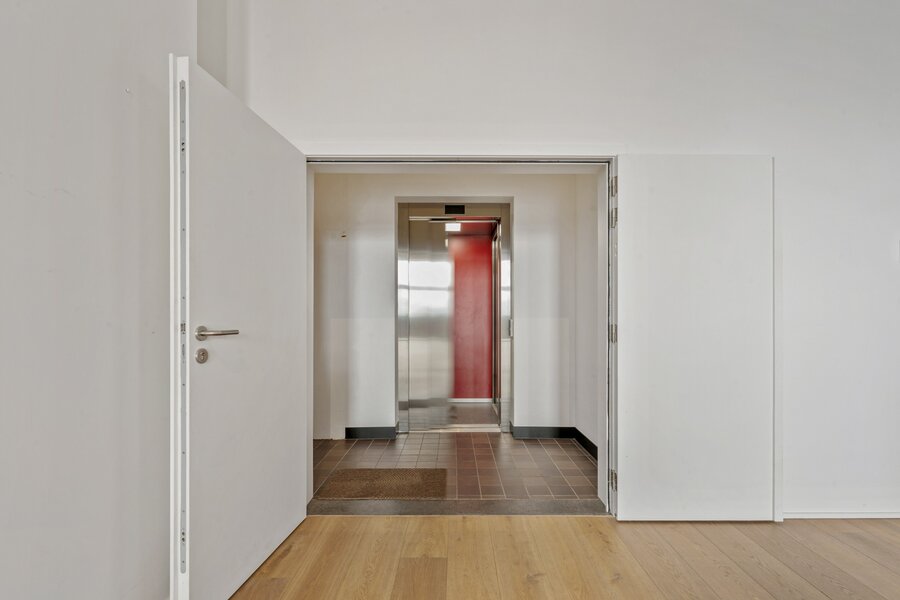Gelegen op de 5e verdieping, waarbij de lift rechtstreeks uitkomt in de inkomhal van de loft, geniet u van maximale privacy en exclusiviteit.