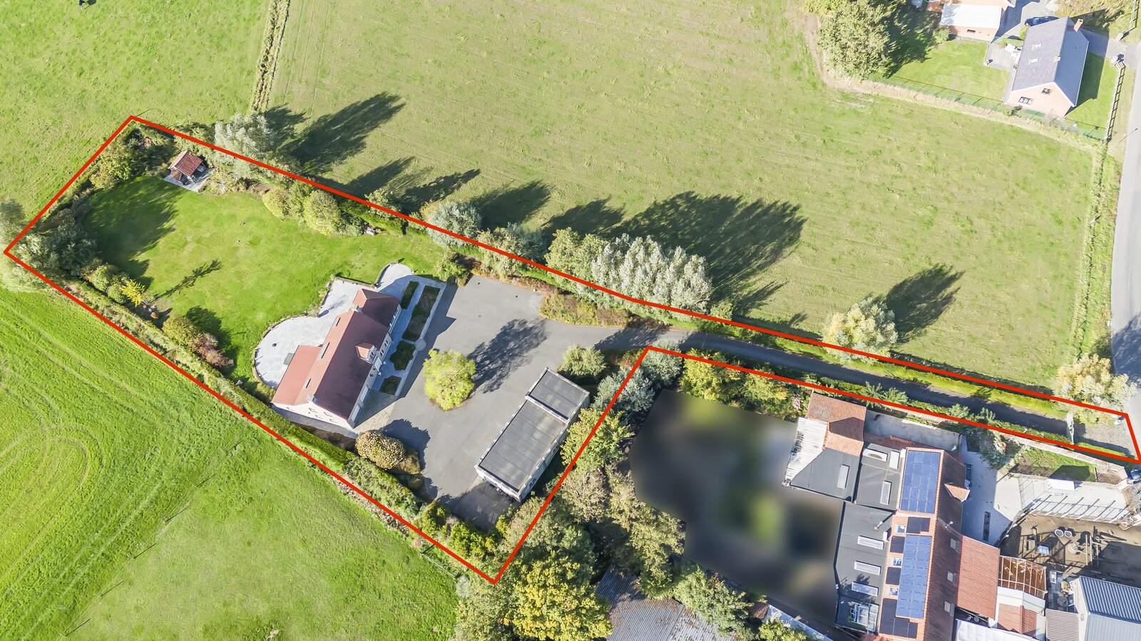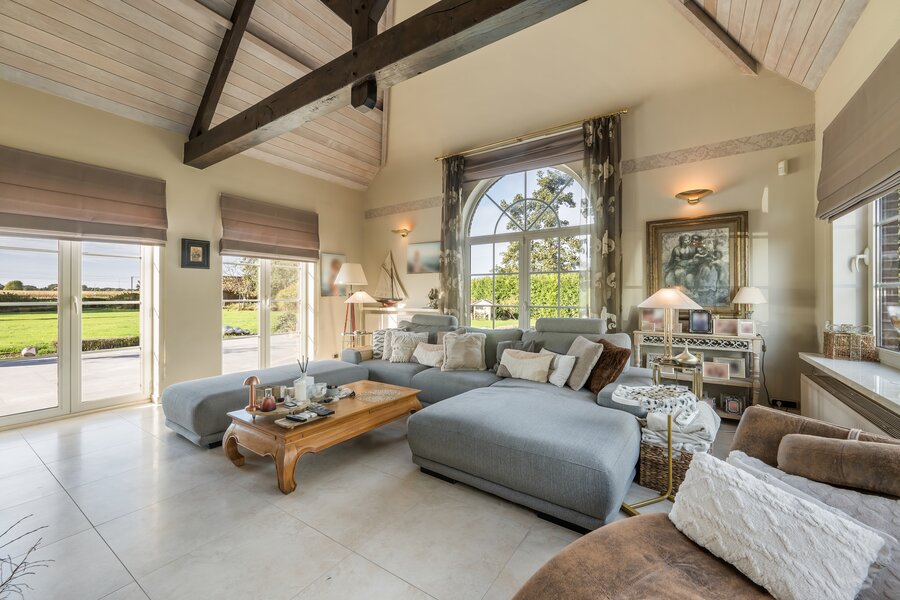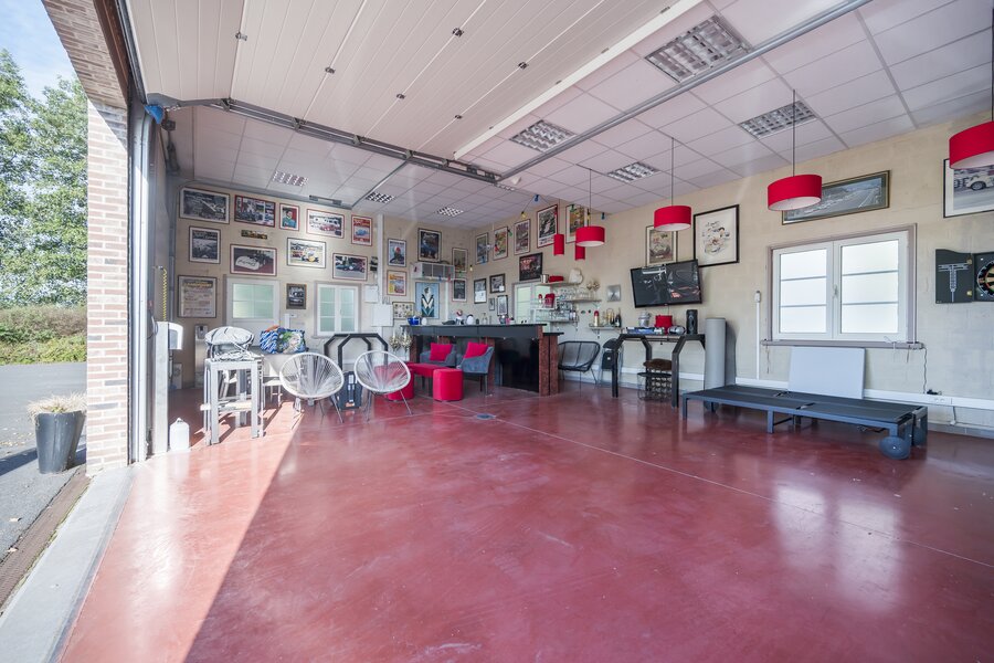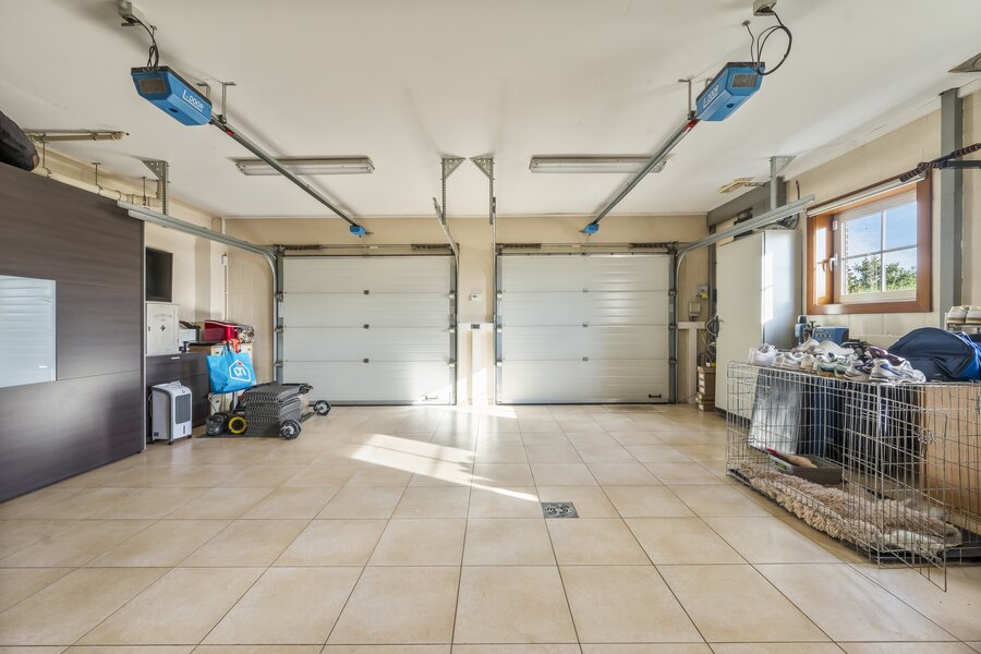 Bijgebouw: Als extra troef beschikt de woning over een enorm bijgebouw van 150 m² met meerdere garagepoorten. Dit kan naar wens worden ingedeeld als hobbyruimte, garage, opslagplaats of praktijkruimte voor een zelfstandige activiteit.