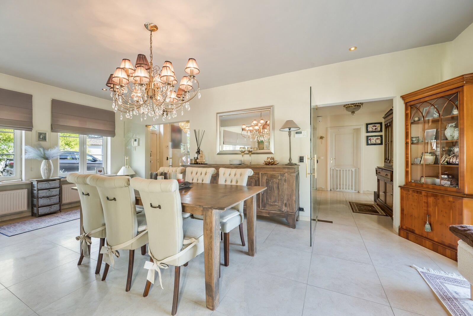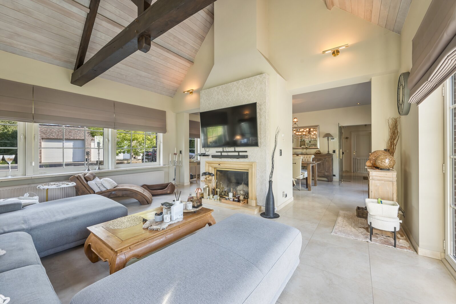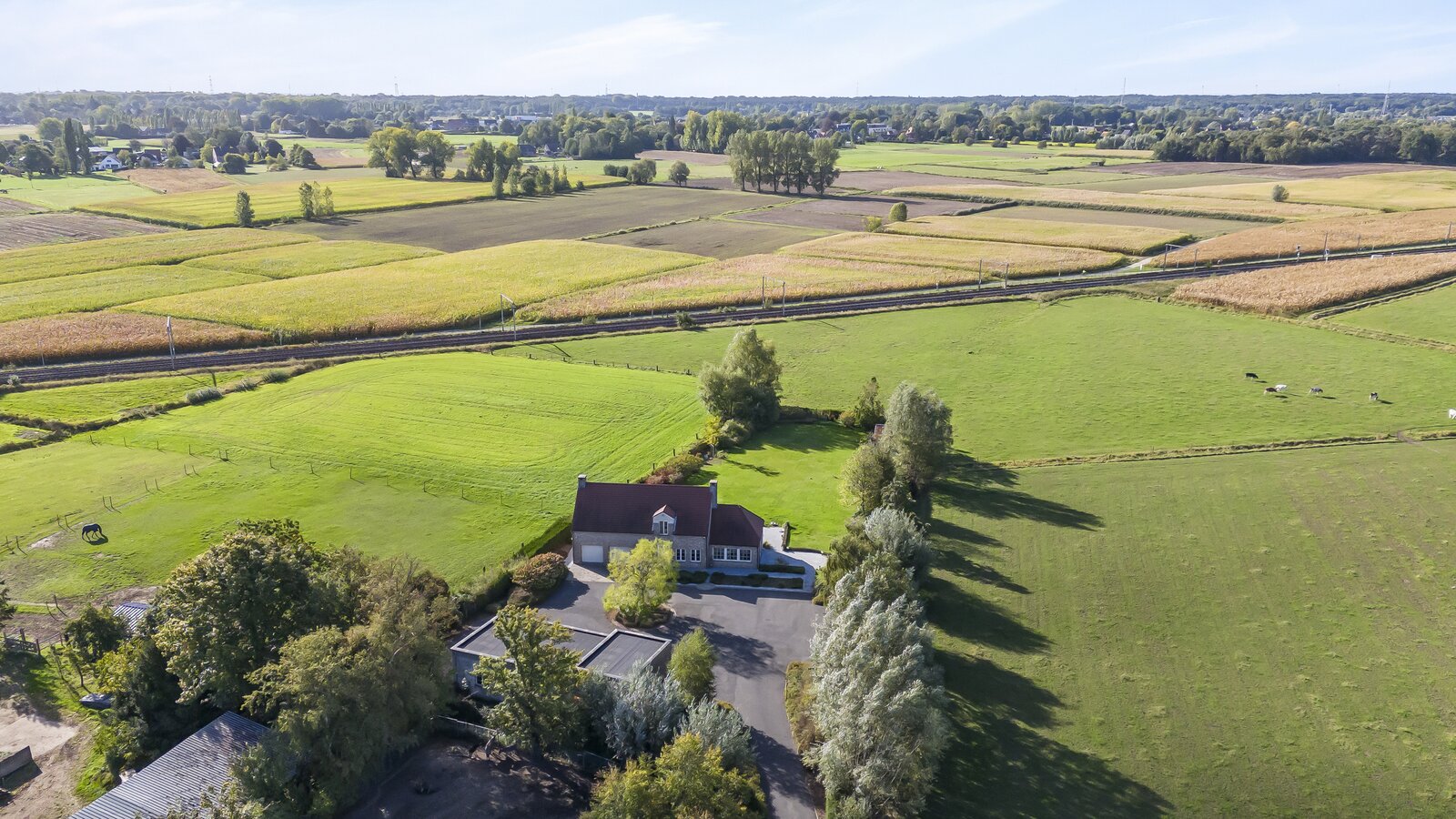 Bijgebouw: Als extra troef beschikt de woning over een enorm bijgebouw van 150 m² met meerdere garagepoorten. Dit kan naar wens worden ingedeeld als hobbyruimte, garage, opslagplaats of praktijkruimte voor een zelfstandige activiteit.