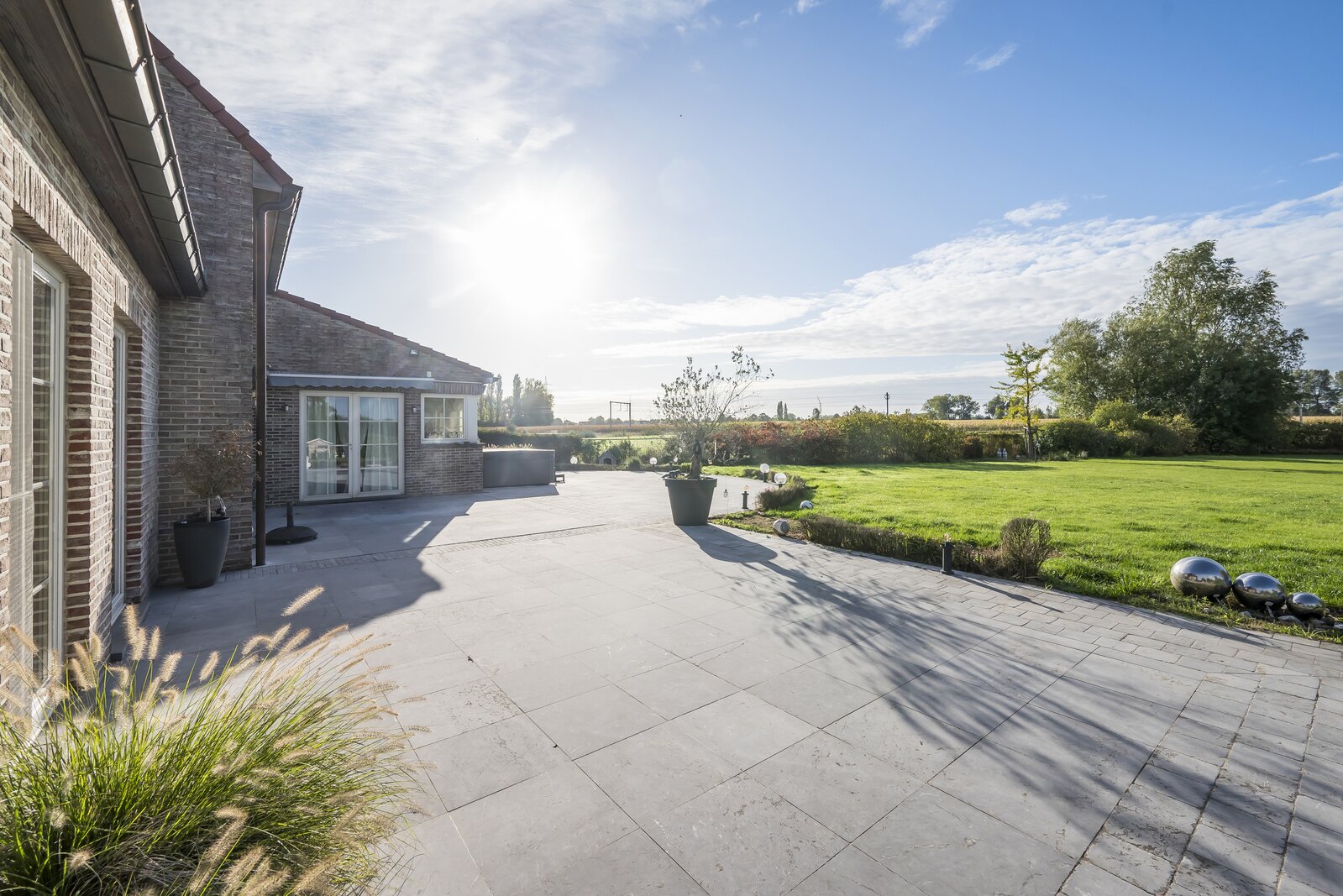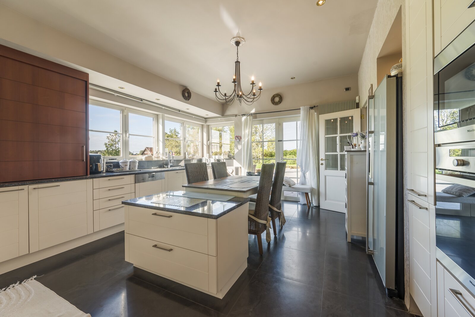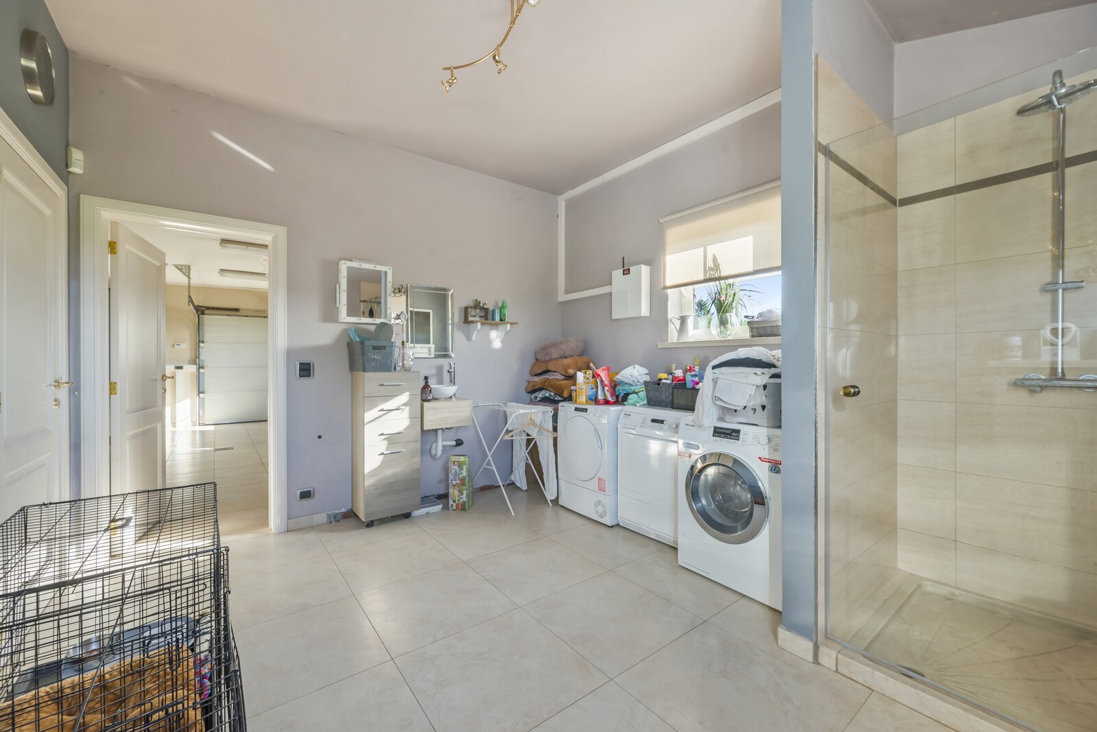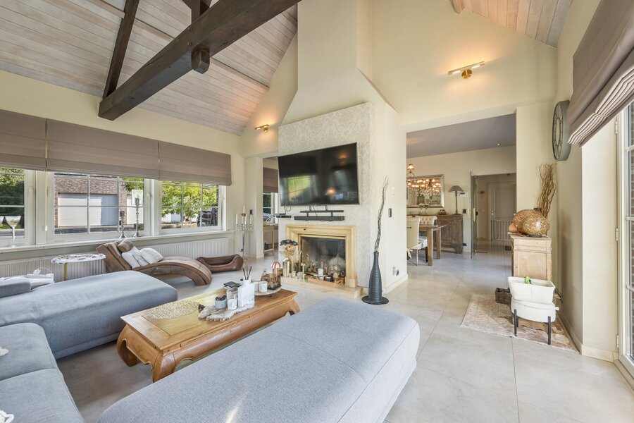 GLV: De gelijkvloerse verdieping verwelkomt je in een riante inkomhal van 12 m² met gastentoilet. De ruime leefruimte van 65 m², ingedeeld in een gezellige living en eetplaats, baadt in het natuurlijke licht en staat in rechtstreeks contact met het zonnige terras en de uitgestrekte tuin met prachtig vergezicht. Via een aparte hal van 6 m² bereiken we de keuken van 23 m², volledig uitgerust met ingemaakte kasten, microgolfoven, oven, vaatwasser en spoelbak, met eveneens een fraai uitzicht op de tuin. Verder is er nog een polyvalente ruimte van 15 m² met douche en aansluitingen voor was- en droogmachine, en een inpandige garage van maar liefst 47 m² met dubbele automatische poort – ideaal voor meerdere wagens of extra bergruimte.
