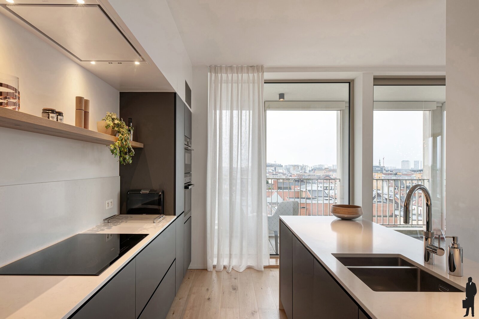 Ontdek dit uitzonderlijk afgewerkte penthouse waar architectuur, licht en verfijning samenkomen. De leefruimte wordt overspoeld met natuurlijk licht dankzij indrukwekkende glaspartijen aan twee zijden en biedt een adembenemend panoramisch uitzicht op de iconische gebouwen van Antwerpen. Het aangrenzende zonneterras, dat zich uitstrekt over de volledige lengte van de woonkamer, vormt een exclusieve buitenruimte waar binnen en buiten naadloos in elkaar overvloeien. Rondom het terras zorgen elektrische screens voor optimale privacy en zonwering, zodat u op elk moment in alle sereniteit van deze unieke buitenruimte kunt genieten.