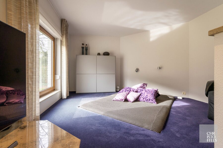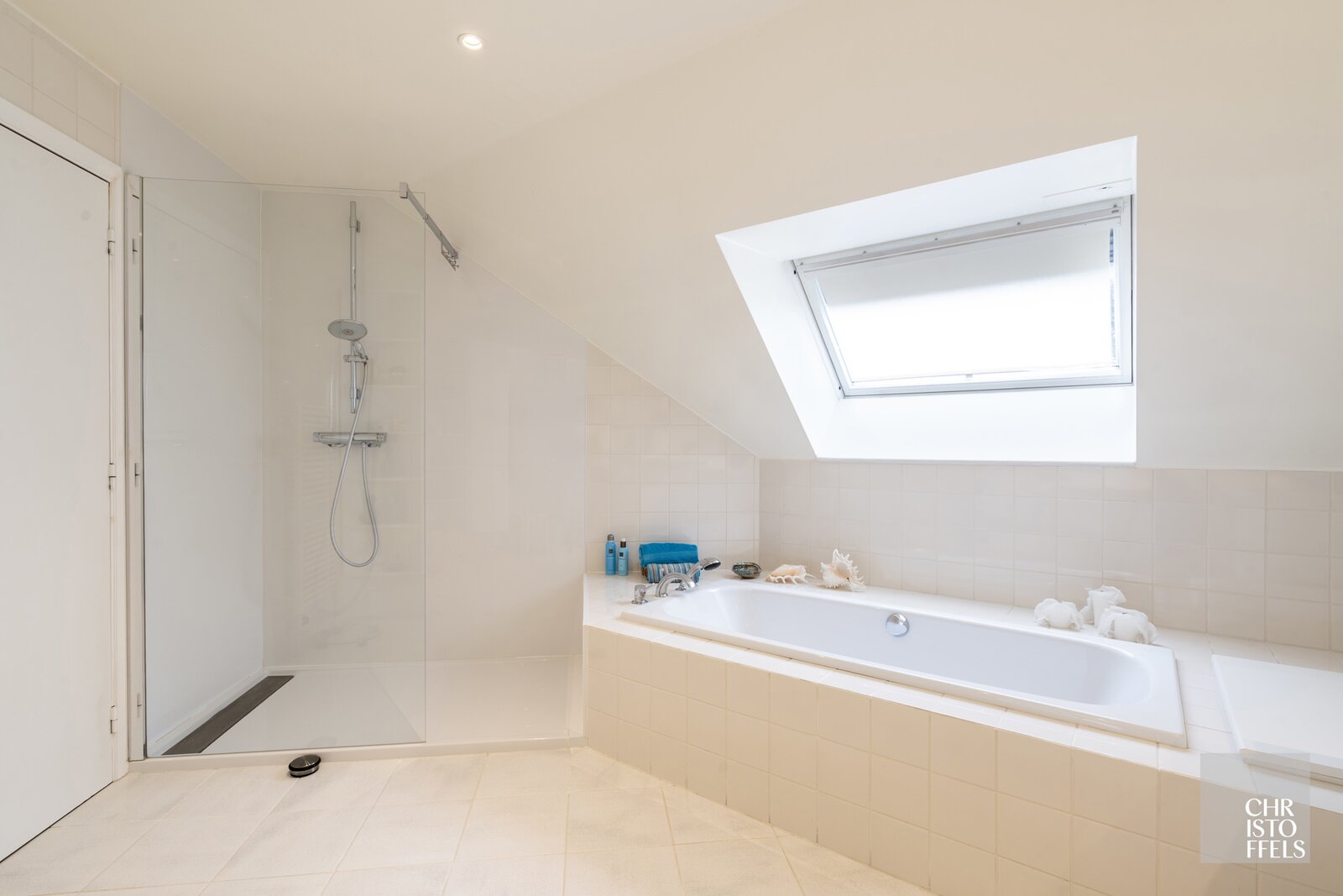 De bovenverdieping is bereikbaar via twee onafhankelijke trappartijen en de brede nachthal incl. vide biedt toegang tot de badkamer, een apart toilet en vijf volwaardige slaapkamers waarvan één met inloopdressing.