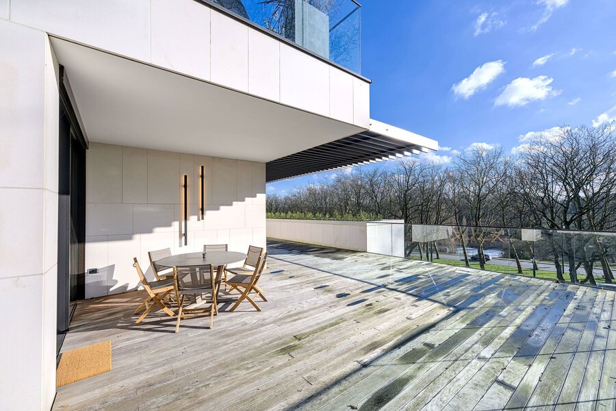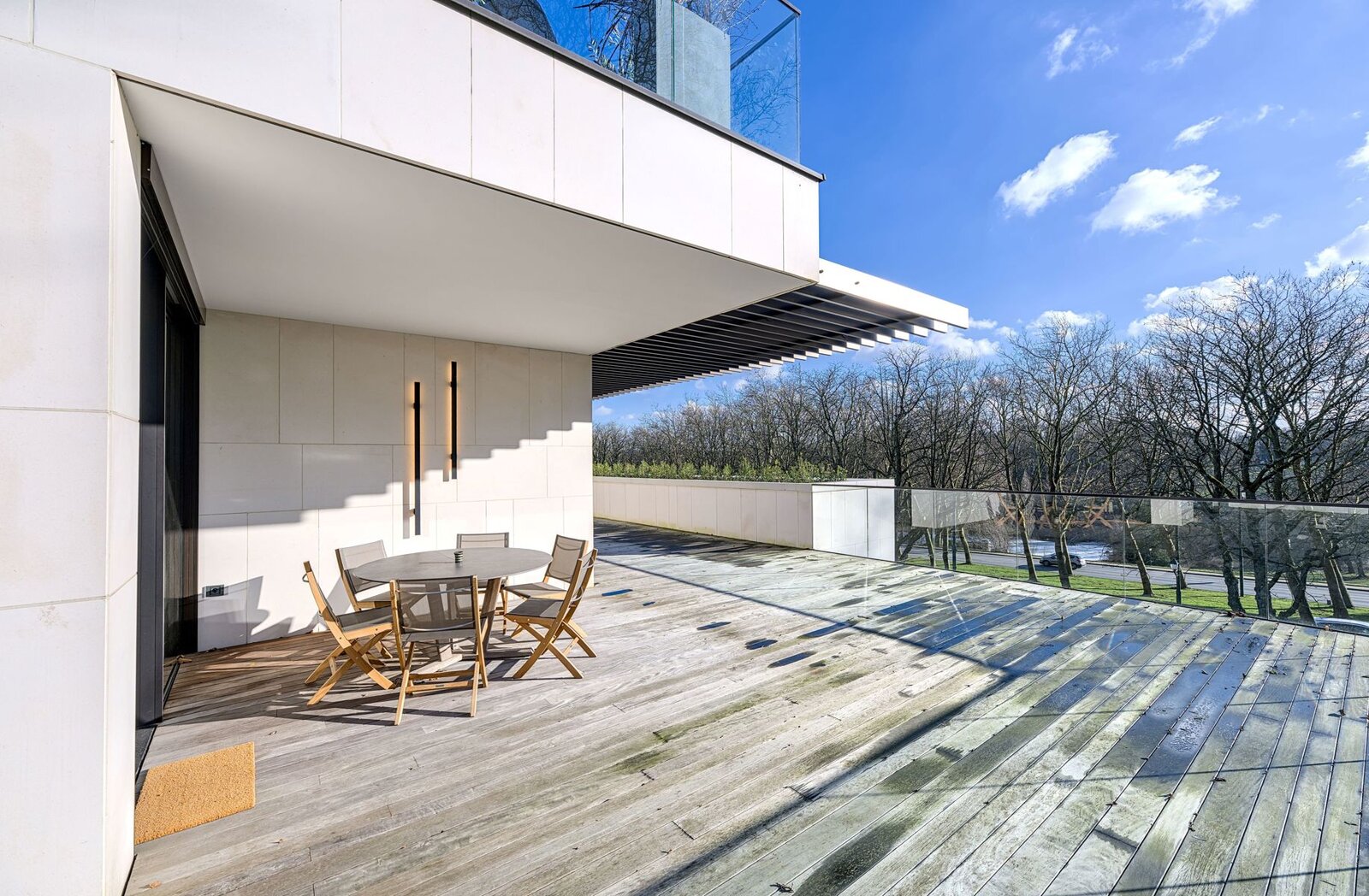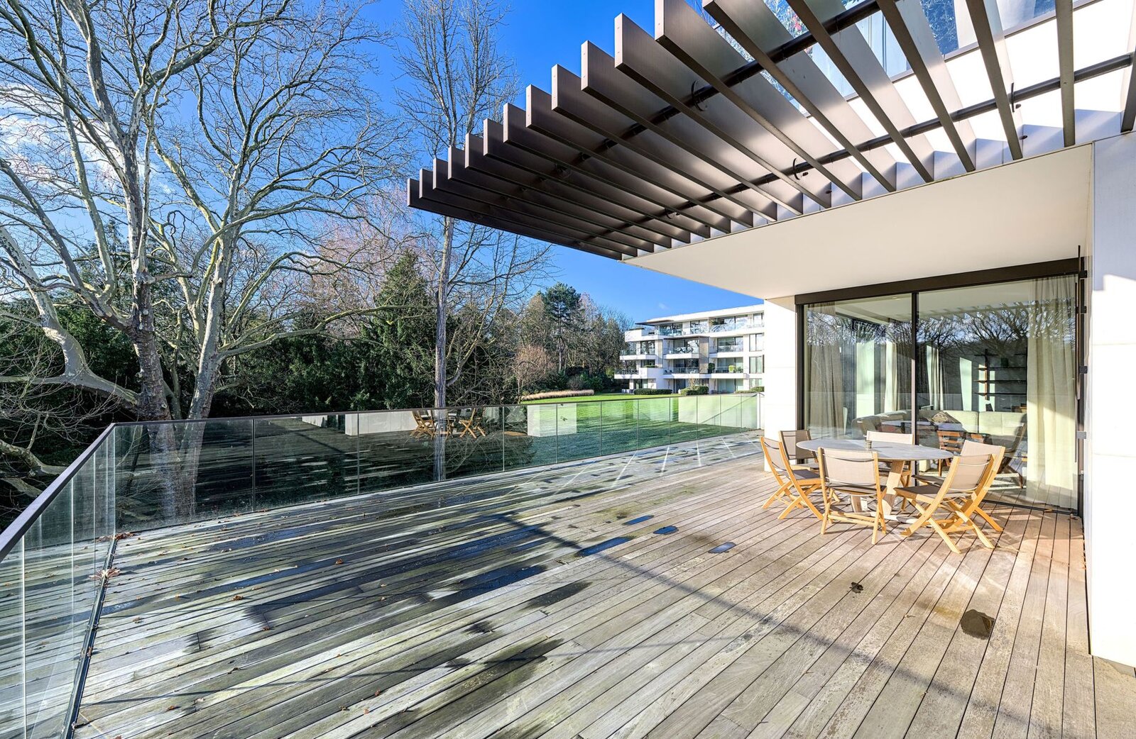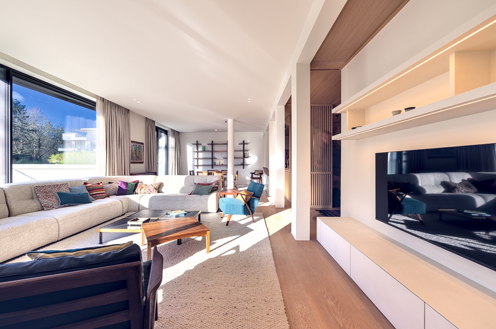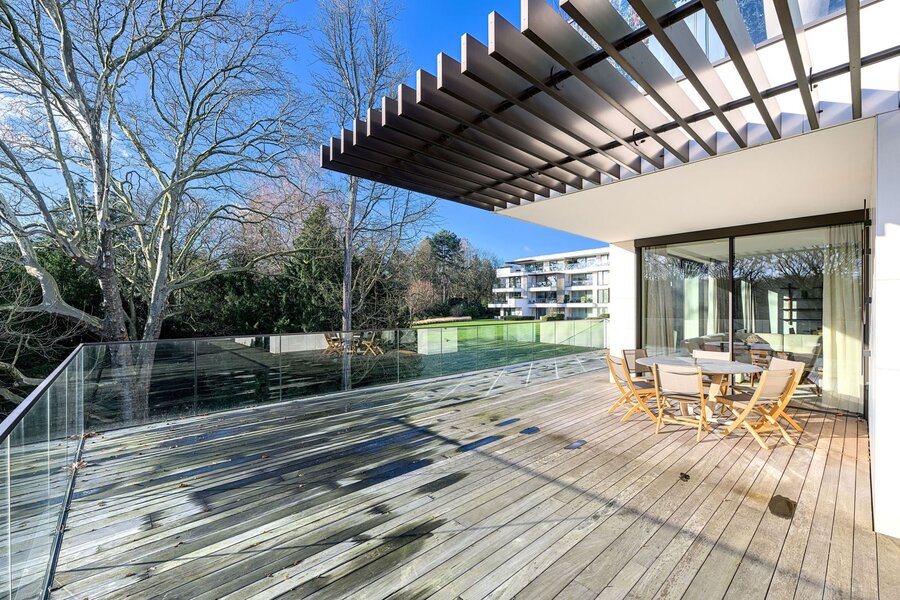 Victoire-Junot: Gelegen in de residentie GRENNHILL PARK in Sint-Pieters-Woluwe in de buurt van het Woluwepark, dit prachtige, volledig ingerichte, luxe appartement met 3 slaapkamers heeft een oppervlakte van 224 m² en 165 m² terras. Het bestaat uit een inkomhal met vestiaire en gastentoilet, een ruime woonkamer met parketvloer, die toegang geeft tot het grote terras, elektrische schuifdeuren met zonneschermen, een mooie volledig uitgeruste keuken, een bureelruimte, een slaapkamer van 44 m² met dressing en aangrenzende badkamer, een tweede slaapkamer van 21 m² met douchekamer en een derde slaapkamer van 19 m² met douchekamer en uitgeruste wasruimte. Het appartement is uitgerust met ingebouwde kasten, verlichting en gordijnen, alarmsysteem, domotica, vloerverwarming, wifi, schuifdeuren.