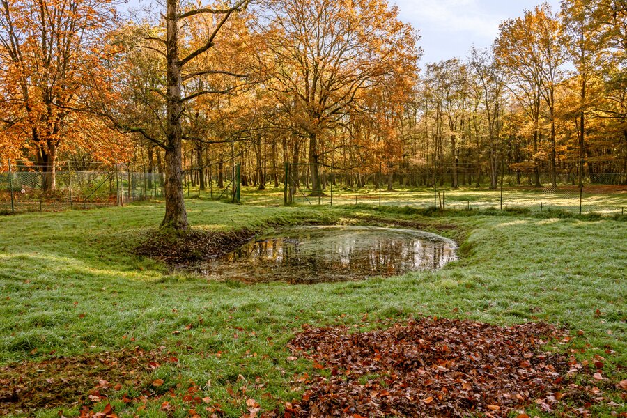 De zuidwest-georiënteerde parktuin vormt een ware oase van rust, met weidse vergezichten en een bijzonder harmonieuze groenbeleving. De tuin werd smaakvol aangelegd, inclusief een fraaie vijverpartij, en beschikt bovendien over een bijgebouw/stal voor het houden van dieren — ideaal voor paarden- of dierenliefhebbers, of voor wie een hobbyproject wenst te realiseren.