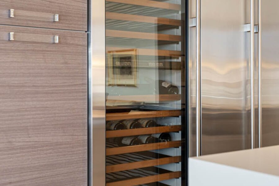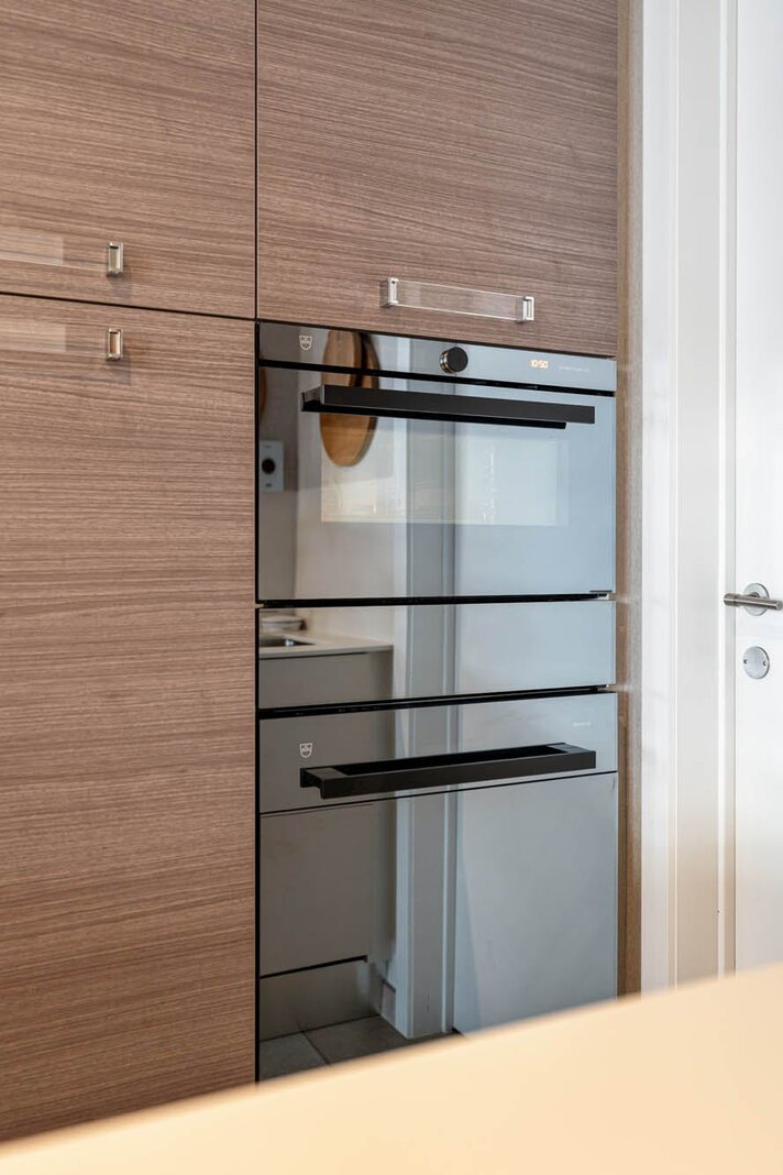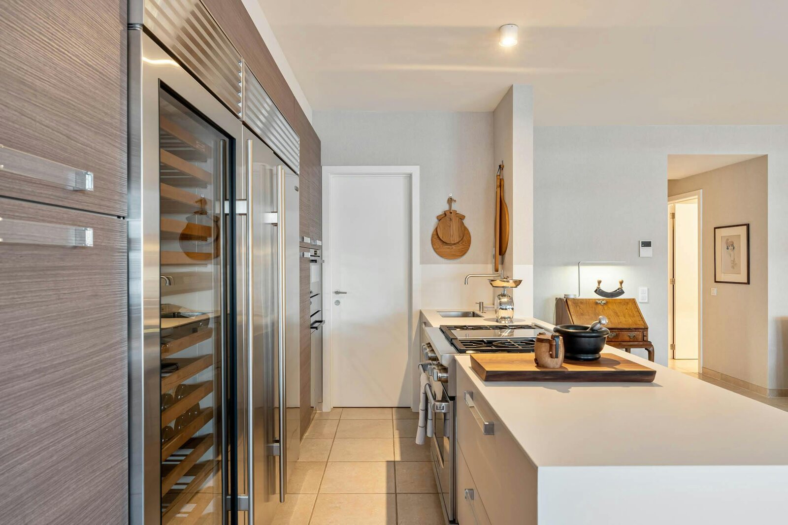 - open keuken met nieuwe inductiekookplaat en oven, Amerikaanse koelkast met diepvriezer, vaatwasser, combi-stoomoven, wijnkoeler...