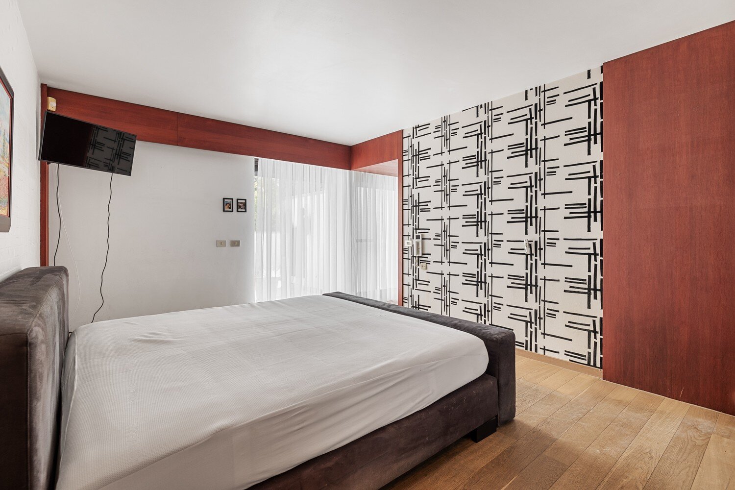 Deze karaktervolle architecturale villa, gebouwd in 1979, straalt klasse en ruimte uit. Met een bewoonbare oppervlakte van maar liefst 392 m² en gelegen op een ruim perceel van 1.680 m², geniet u hier van volledige privacy, rust én een verwarmd zwembad via een warmtepomp.