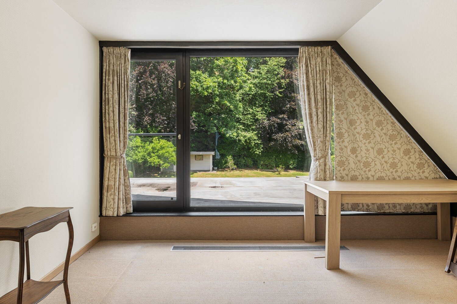 Op het gelijkvloers bevindt zich verder nog een aparte bureauruimte, een eerste slaapkamer met dressing en ensuite badkamer, voorzien van bad, inloopdouche, dubbele lavabo en toilet. Daarnaast is er ook een praktische bergruimte.