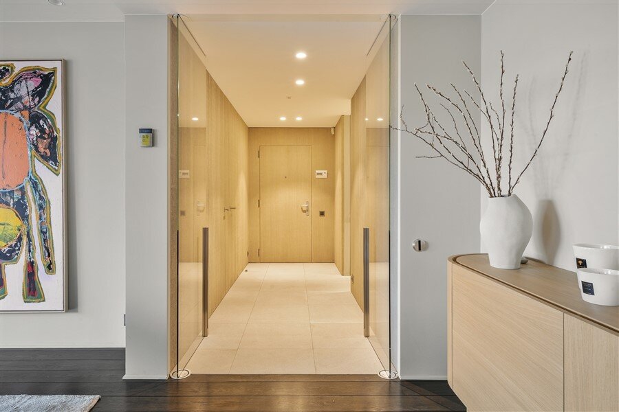 Stap binnen in dit prachtig afgewerkte appartement en laat je meteen verleiden door de grandeur van de ruime inkomhal, compleet met een stijlvolle gastentoilet.