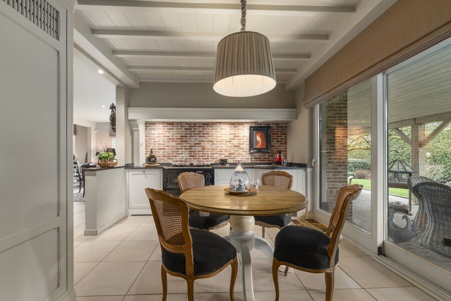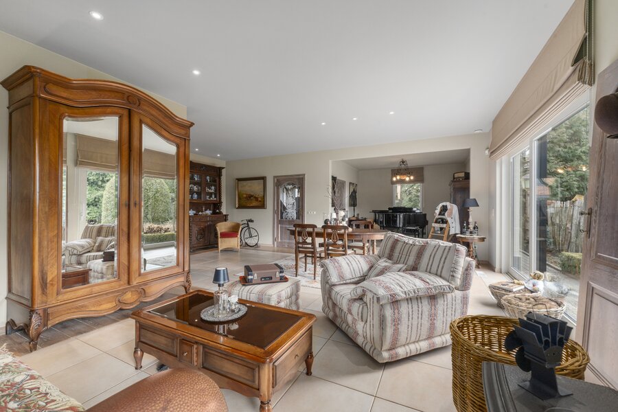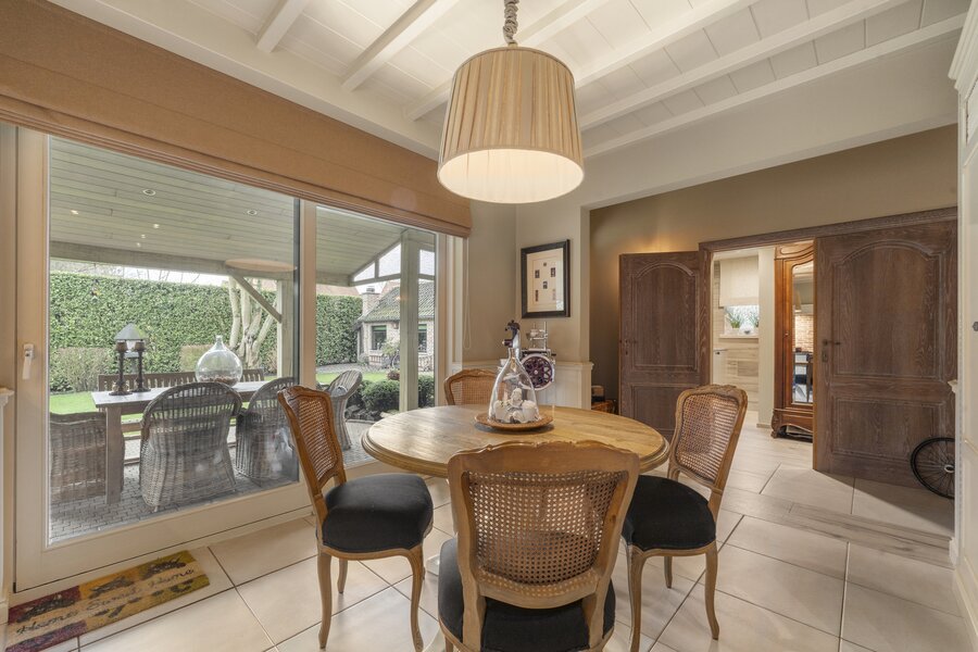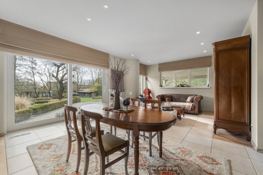 Deze ruime woning uit 1994 biedt een royale leefruimte en een prachtige tuin van +- 1800 m² met vrij zicht. De ligging combineert rust en privacy met een vlotte bereikbaarheid. De gehele woning straalt kwaliteit uit door het gebruik van superieure materialen en oog voor detail.