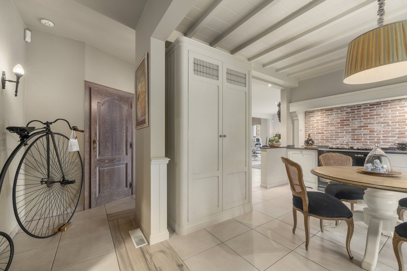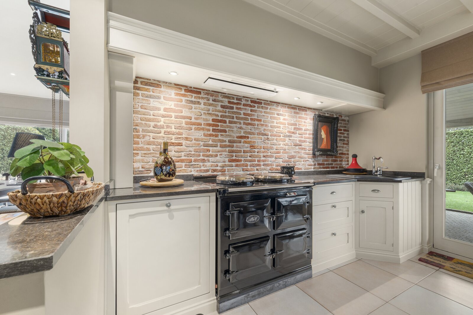 • Volledig ingebouwde keuken met vele ingemaakte kasten, koelkast en AGA-Fornuis (ingebouwde dampkap en 3 ovens)