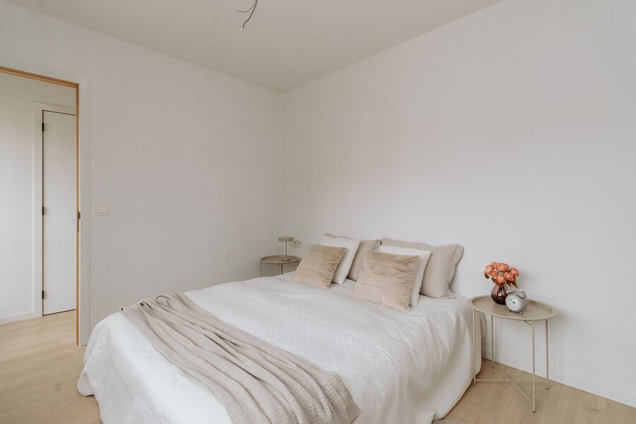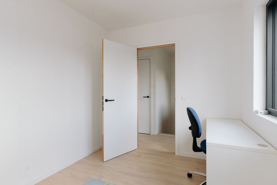 De eerste verdieping omvat een master bedroom, een apart bureel (of extra slaapkamer), een afzonderlijk toilet en een badkamer met inloopdouche. Op de tweede verdieping bevinden zich nog twee slaapkamers, een tweede badkamer en apart toilet.