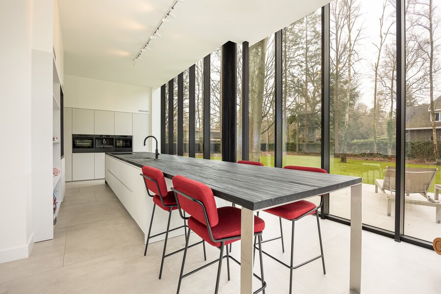 elegante glazen uitbouw en is uitgerust met hoogwaardige, energiezuinige toestellen die