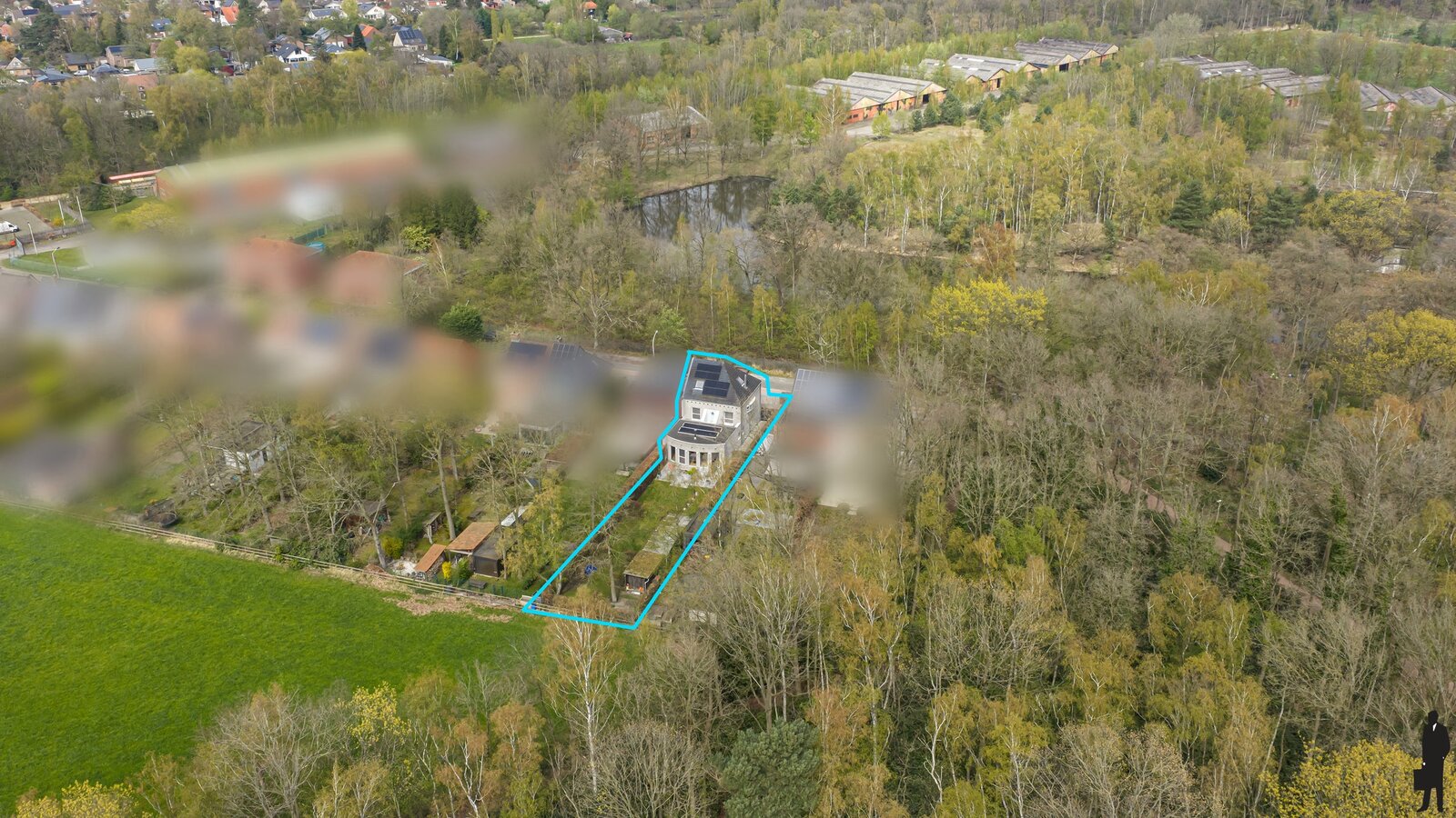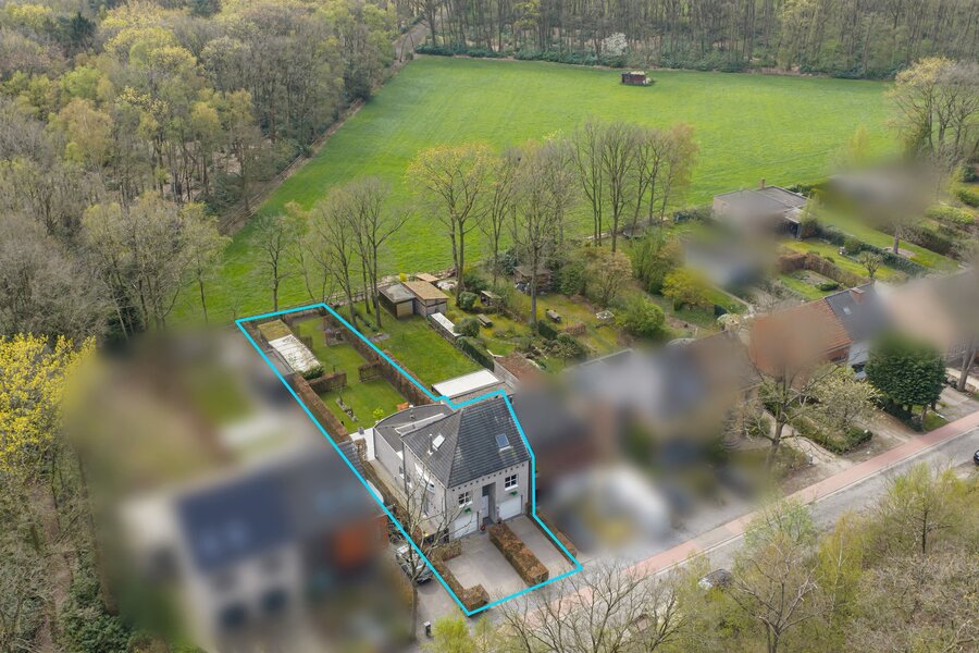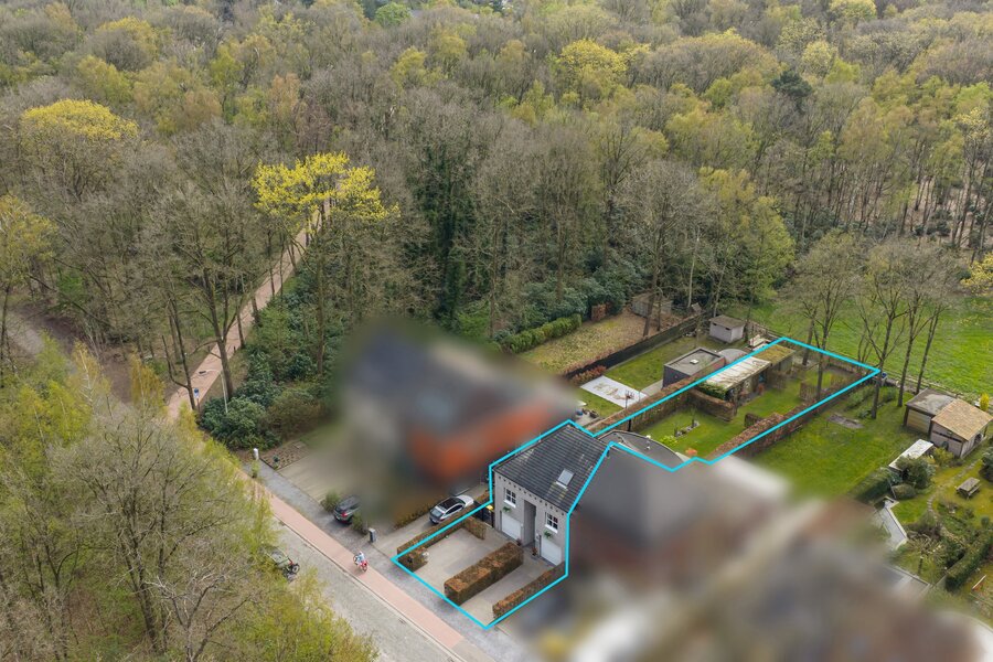 Op unieke locatie, einde doodlopende straat en grenzend aan bos en velden op het Zuidwesten gelegen architecturale woning met unieke leefruimte, meerdere slaapkamers en polyvalente zolderruimte