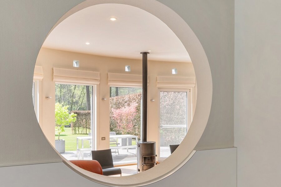 Deze bijzondere woning valt meteen op door haar architecturale vormgeving en uitzonderlijke lichtinval. Dankzij de doordachte indeling, de ruime leefomgeving en de grote raampartijen geniet u hier van een aangename en comfortabele woonbeleving in alle rust.
