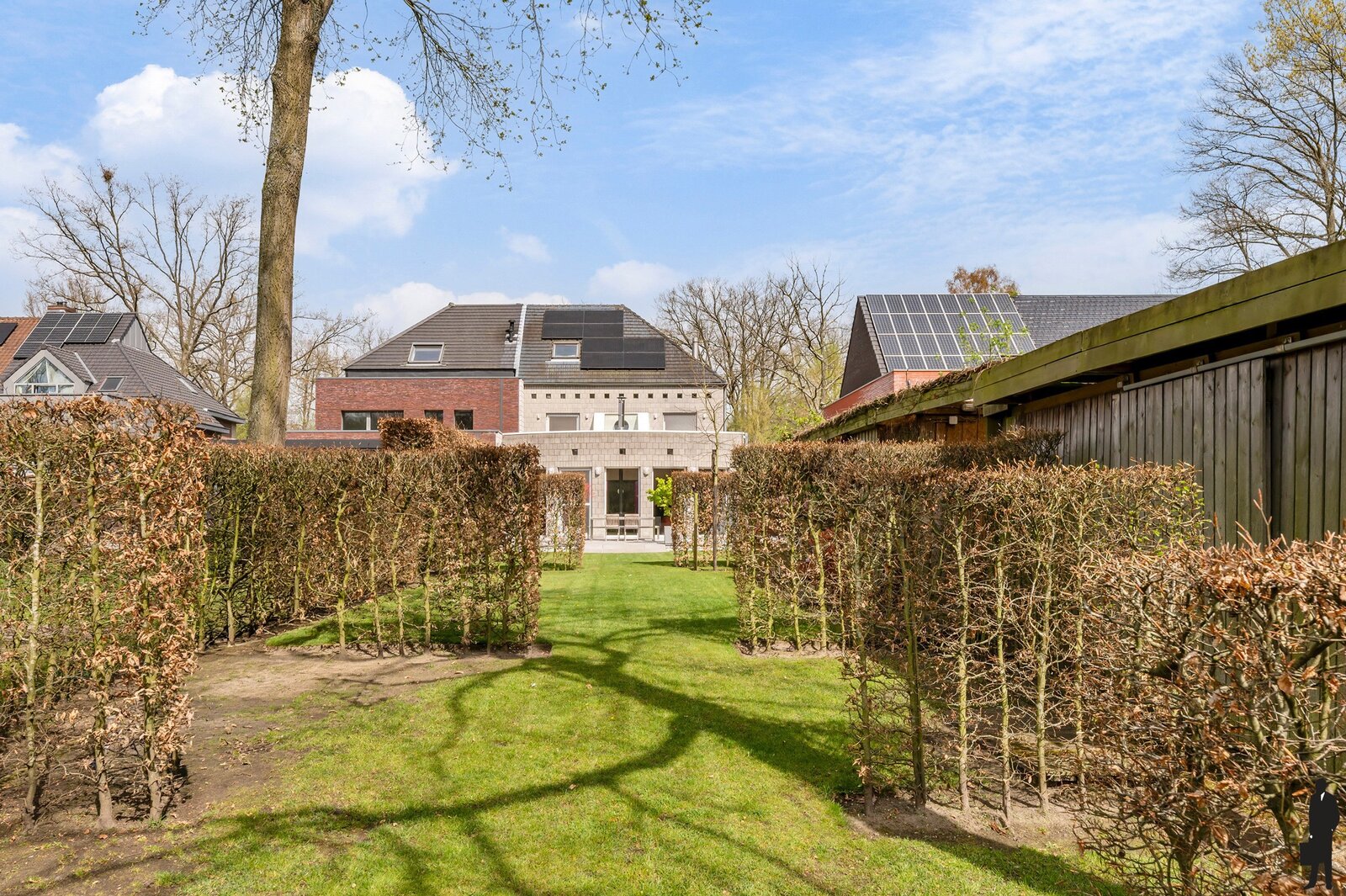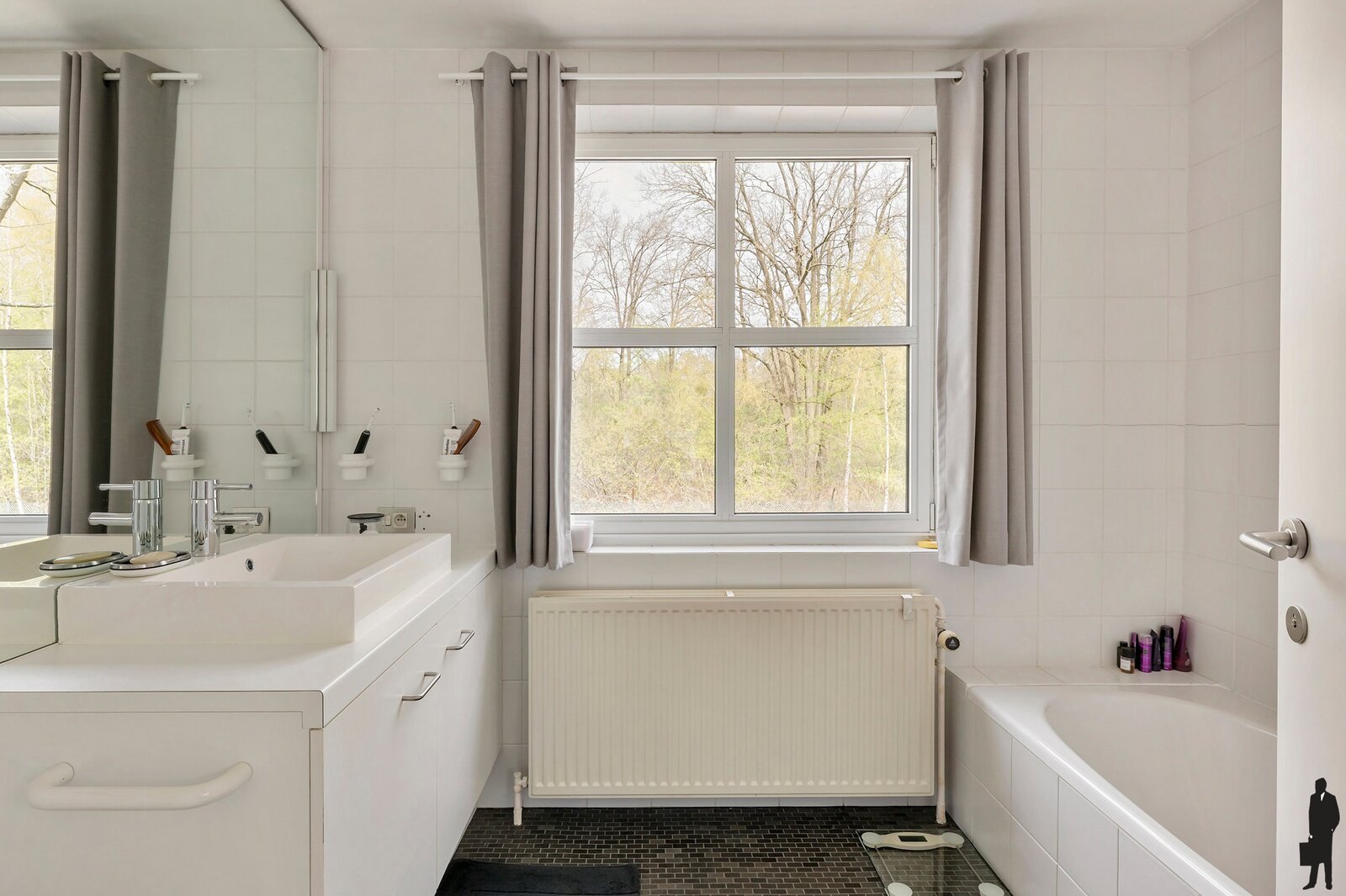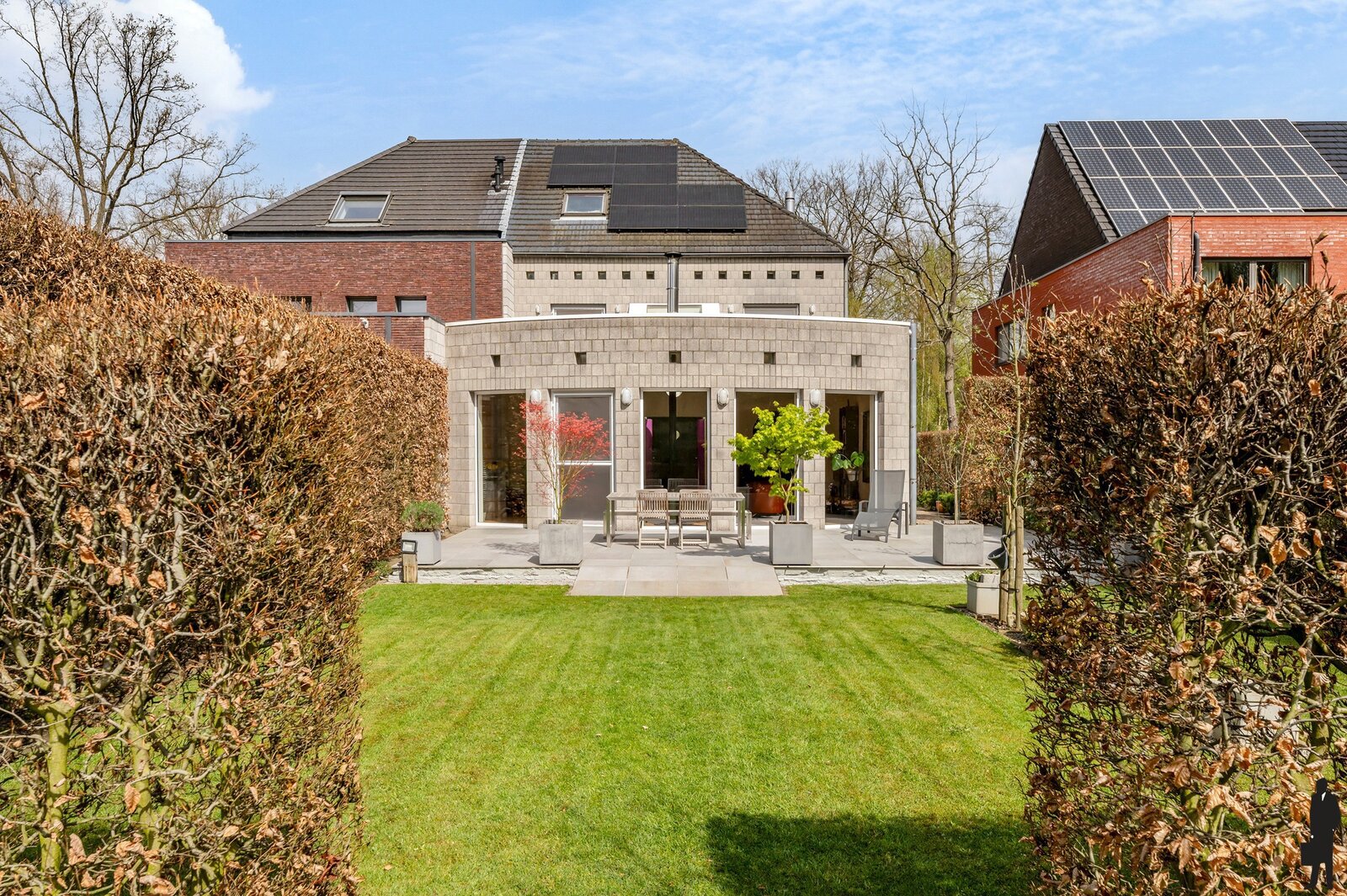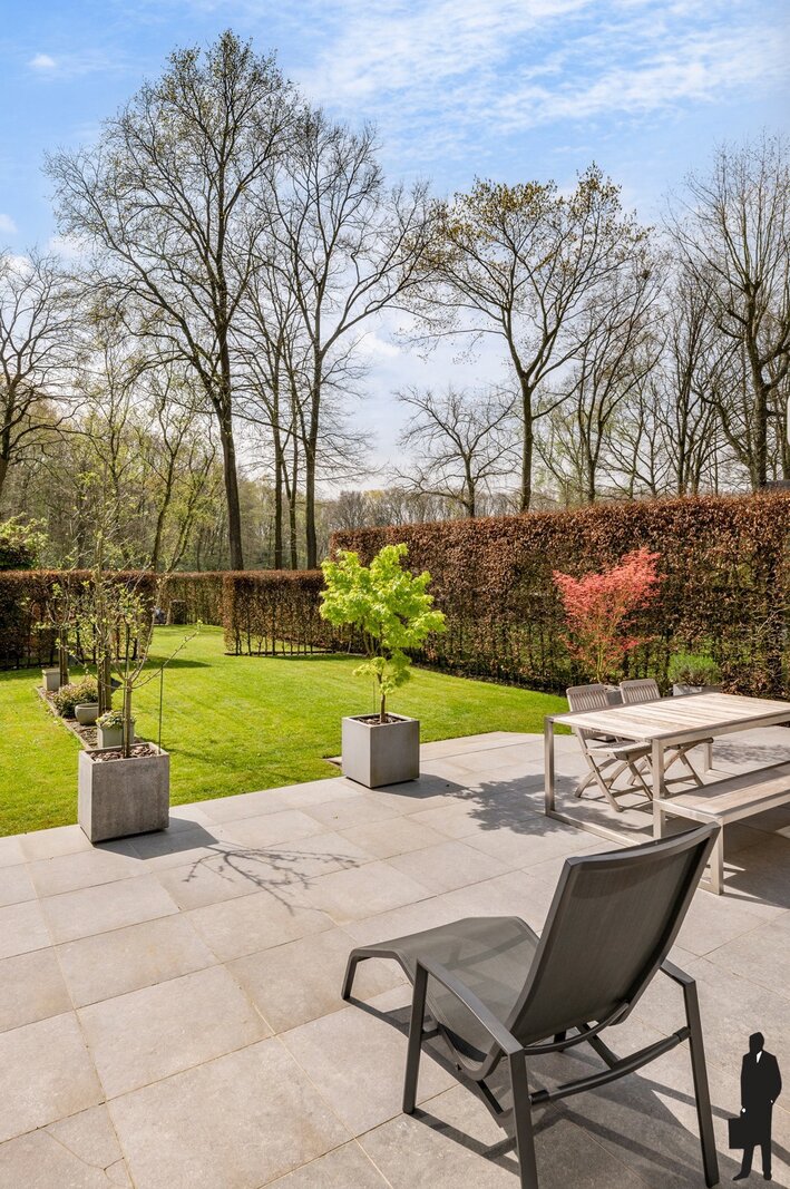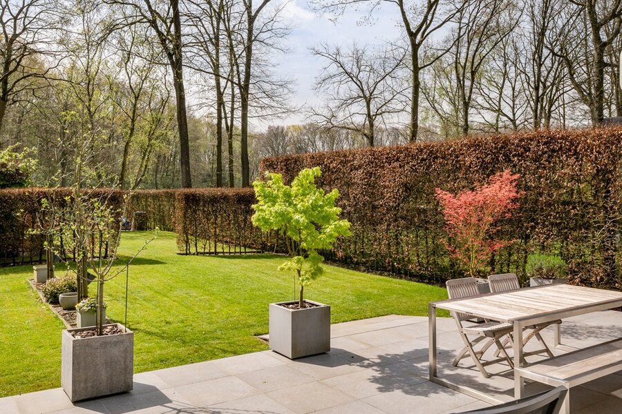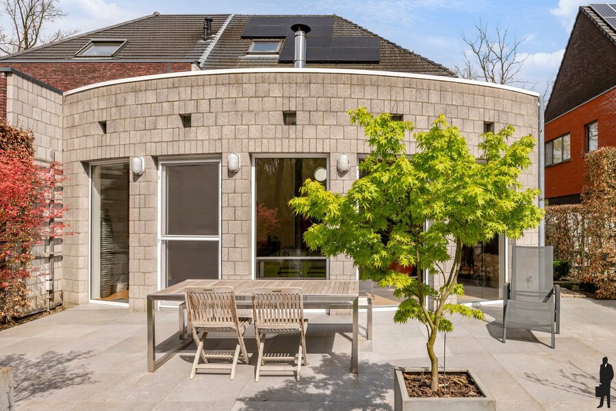 De woning beschikt over een aangename tuin waar u in alle rust kan genieten van privacy en groen. De grote raampartijen zorgen voor een mooie connectie tussen binnen en buiten.