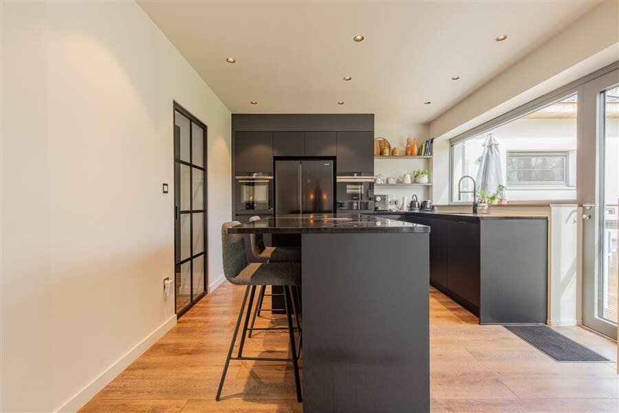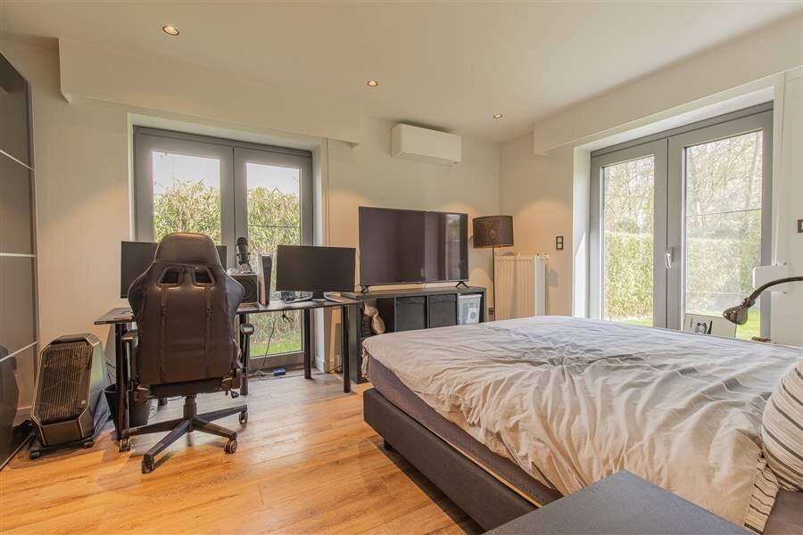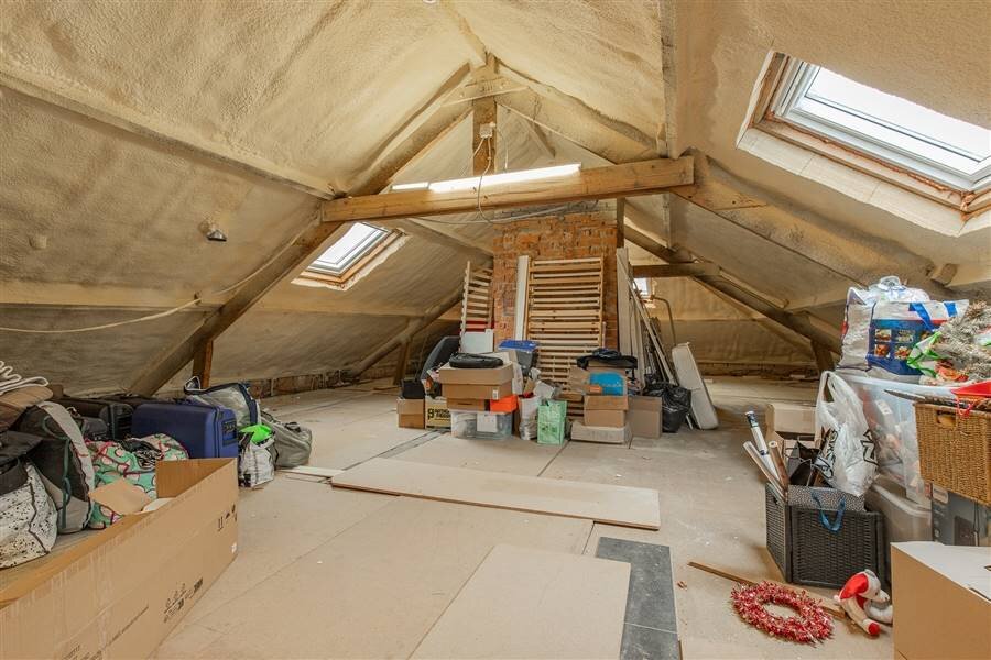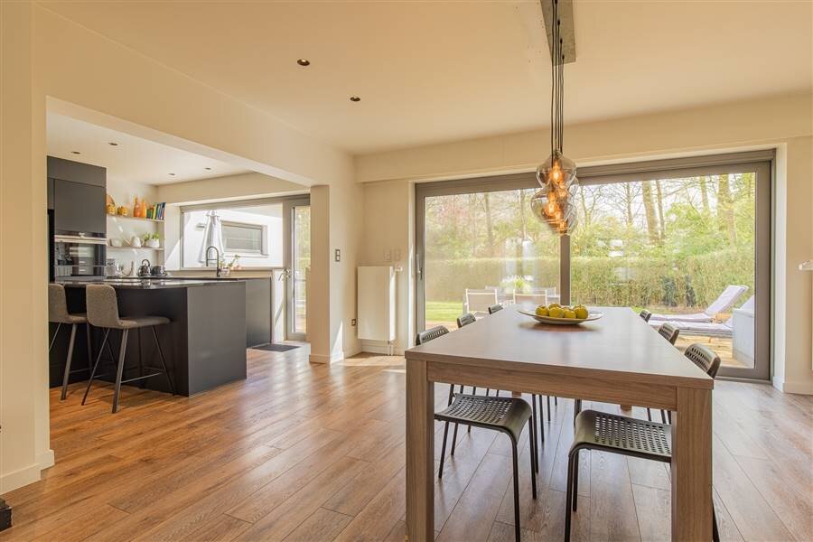 In een residentiële & kindvriendelijke wijk Hof ter Bollen vinden we deze energiezuinige woning (EPC-score "A"') met een bewoonbare oppervlakte van +/- 246 m² en dit op een perceel van 14a 80ca. De woning werd in 2020 - 2021 volledig gerenoveerd (muurisolatie, dakisolatie + 43 zonnepanelen, 3 dubbele beglazing, geïsoleerde kruipruimte etc.) Daarom ook zeer goede EPC-score A. De indeling is als volgt: inkomhal met gastentoilet, zeer ruime eet- en leefruimte met open & uitgeruste keukens van keukens De Abdij, 4 slaapkamers, badkamer en een ruime inpandige garage (32 m²). Een van de kamers kan trouwens ook gebruikt worden als kleine praktijkruimte bv. De woning beschikt tevens nog over een volledig zolderverdiep (met vaste trap) welke nog ingedeeld kan worden tot extra slaapkamers of gebruikt kan worden als polyvalente ruimte.