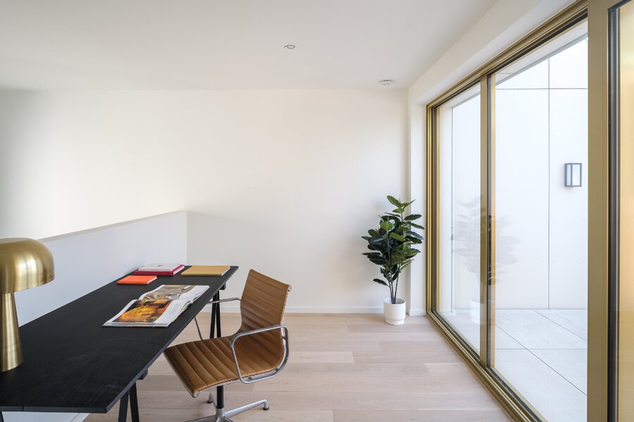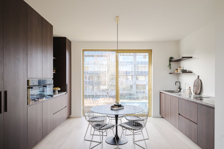 De moderne townhouse voldoet aan alle hoogste energetische normen (warmtepomp, vloerverwarming, zonnepanelen) en beschikt onder meer over vier slaapkamers, twee badkamers en drie buitenruimtes. De lichtrijke volumes, grote raampartijen en stijlvolle afwerking spreken tot de verbeelding en zorgen voor een exclusieve beleving doorheen de woning.