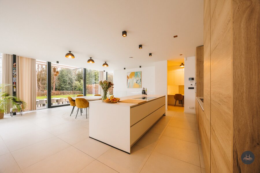 Met trots stellen wij u deze architecturale, moderne villa voor, gelegen op een uniek perceel van 1.778 m² in de groene rand van Keerbergen. Deze exclusieve open bebouwing verenigt een strak design met een uiterst kwalitatieve afwerking en biedt een bewoonbare oppervlakte van maar liefst 339 m². Dankzij de grote raampartijen geniet de woning van een overvloed aan natuurlijk licht en een rustgevend zicht op de omliggende tuin.
