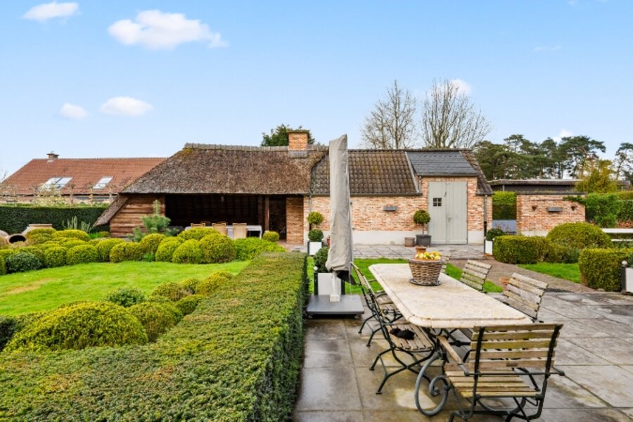 Zeer rustig gelegen stijlvolle luxe villa op 36 are met mooie aangelegde tuin en bijgebouw met overdekt terras. Gelegen aansluitend op uitgestrekt beschermd natuur- en wandelgebied. West georiënteerd.