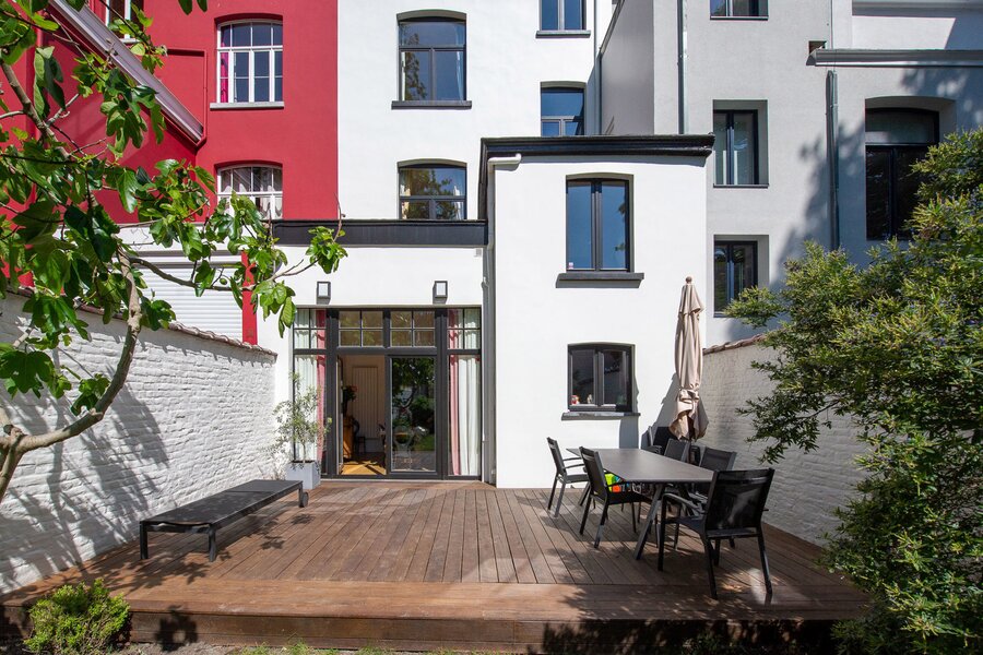 Deze elegante neoklassieke herenwoning, ideaal gelegen aan een rustige straat tussen de wijk Kastelein en Place Stefaniaplein, heeft een bruto vloeroppervlakte van circa 369 m² volgens het energielabel (EPC) en werd gebouwd aan het einde van de 19e eeuw. De woning is in 2011 volledig gerenoveerd en biedt vijf slaapkamers en een aangename, op het zuidwesten georiënteerde stadstuin.
