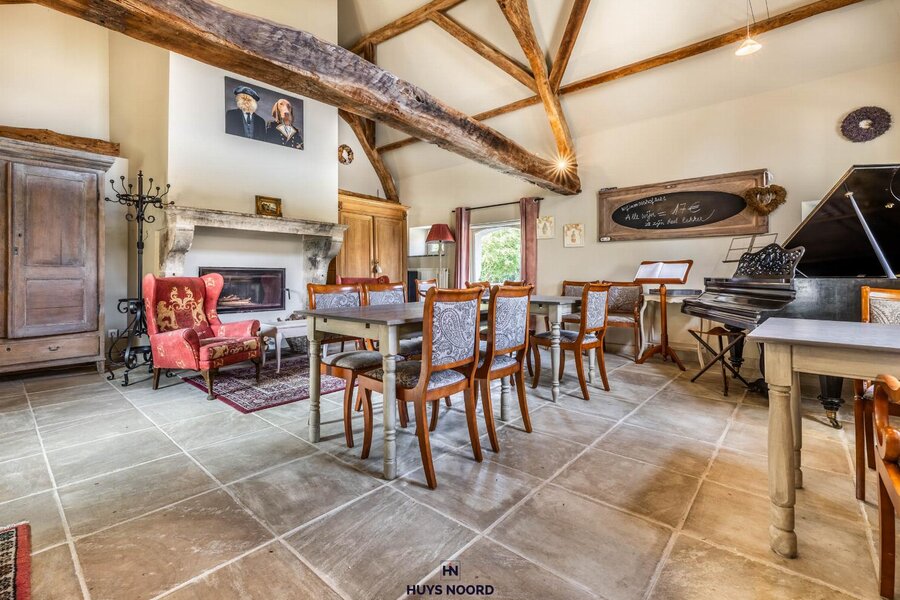 Tenslotte de zeer aangename gemeenschappelijke ontbijtruimte/leefruimte/ontspanningsruimte met gezellige open haard.