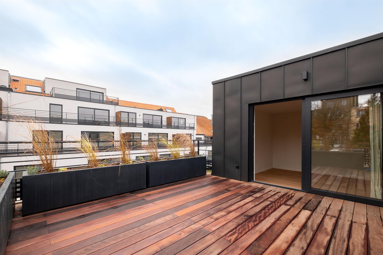 Deze prachtige, moderne woning, gelegen vlakbij Avenue Coghen en Avenue Messidor, biedt circa 262 m² woonruimte in een nieuwbouwproject. De woning bestaat uit een entreehal met toilet, een ruime woonkamer met een volledig uitgeruste open keuken, vijf royale slaapkamers (circa 17,70 m², 16,30 m², 15,60 m², 14,70 m² en 10,20 m²), een ruimte geschikt voor een kantoor of een zesde slaapkamer (circa 15,60 m²) en drie badkamers (één met douche, één met een aparte badkamer en douche). Een fraaie tuin en een prachtig terras bieden een panoramisch uitzicht. Een kelder en een parkeerplaats zijn inbegrepen. Hoogwaardige materialen, een individuele gasboiler en een dubbelventilatiesysteem maken de woning compleet. Servicekosten: € 240 per maand (voorziening voor onderhoud van gemeenschappelijke ruimten en tuin, afstand van verhaalrechtverzekering en onderhoud van het dubbelventilatiesysteem). Energielabel (EPC): B. Exclusief verkrijgbaar bij Vaneau Lecobel!