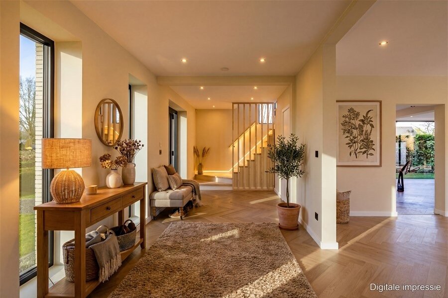 Tijdens de totaalrenovatie werd werkelijk aan alles gedacht en werd de woning uitgerust met hedendaags en energiezuinig comfort: vloerverwarming met warmtepomp, grote raampartijen met driedubbele beglazing, zonnepanelen, camerabewaking en meer. Dit alles resulteert in een EPC-label A+, wat deze woning volledig energieneutraal maakt.