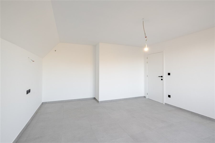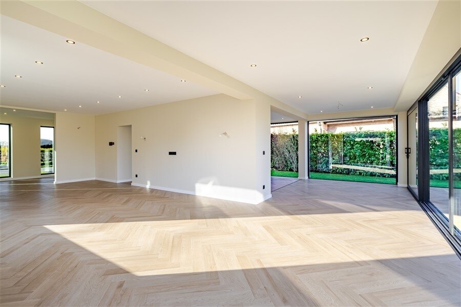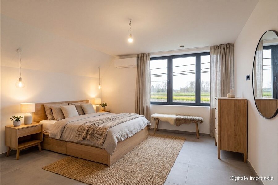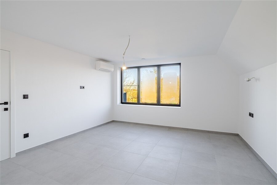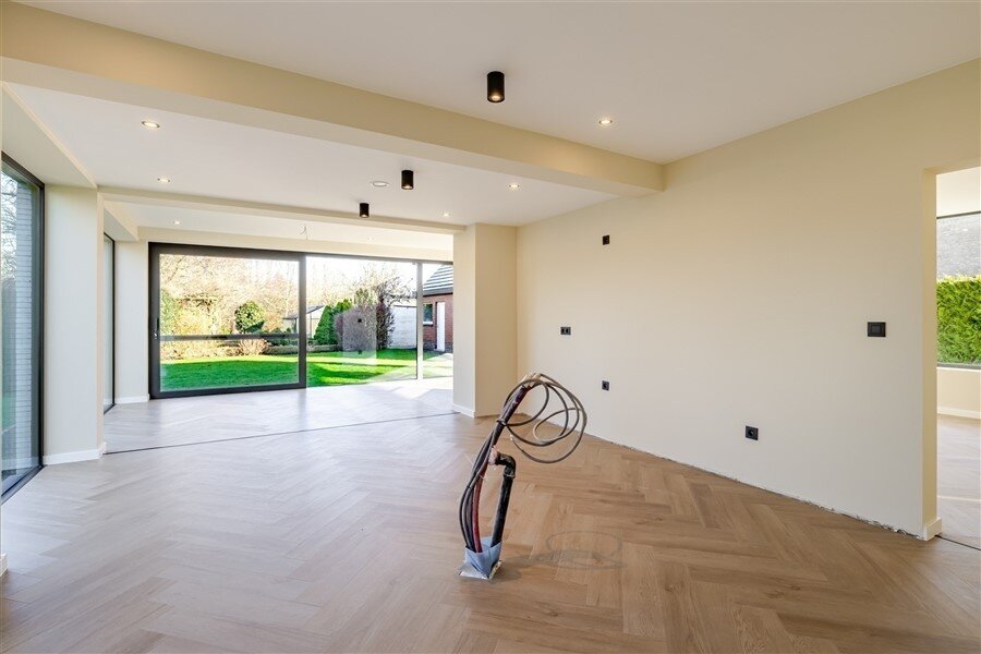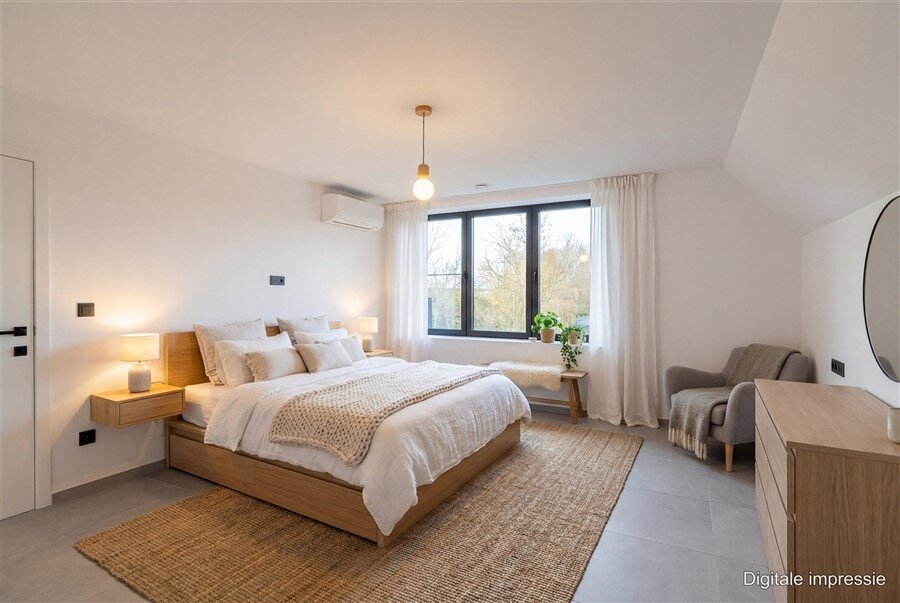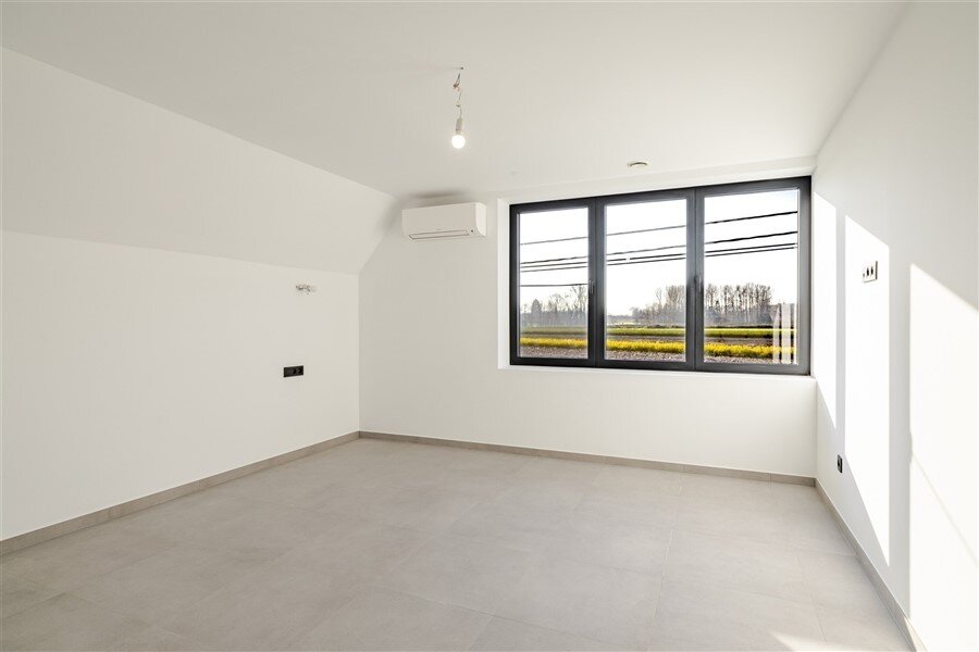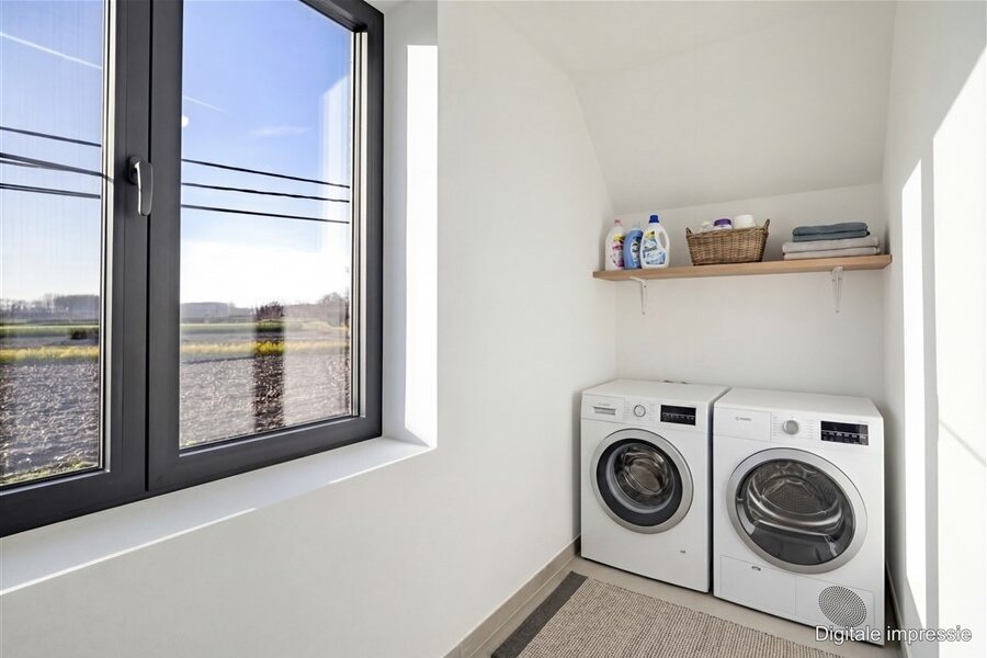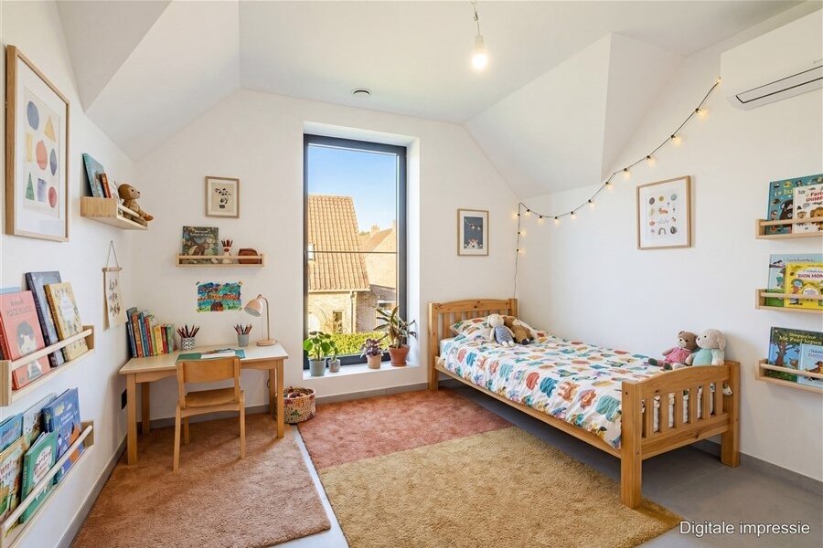 De indeling is als volgt: een ruime inkomhal met gastentoilet leidt naar een bijzonder lichtrijke leef- en eetruimte. Dankzij het open karakter van de woning baadt ook de keuken (nog vrij te plaatsen) in natuurlijk licht. Op de verdieping bevinden zich drie volwaardige slaapkamers, een stijlvolle badkamer met inloopdouche, toilet en lavabomeubel, evenals een praktische was- en bergruimte. Extra opbergruimte is voorzien via een kelder en zolder.