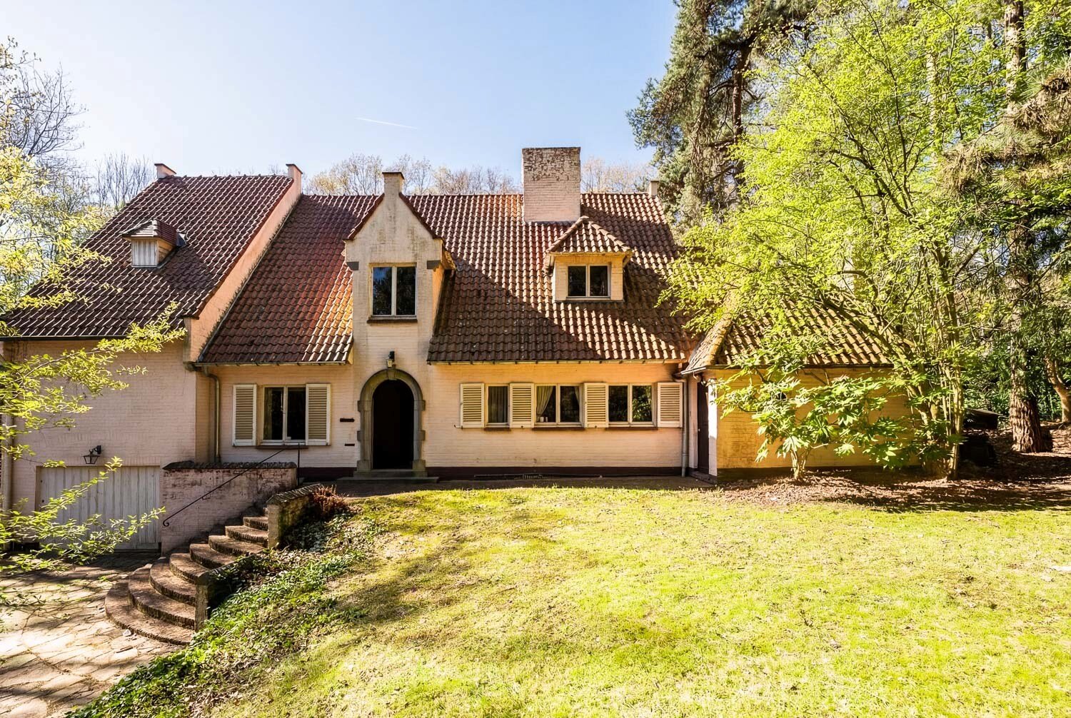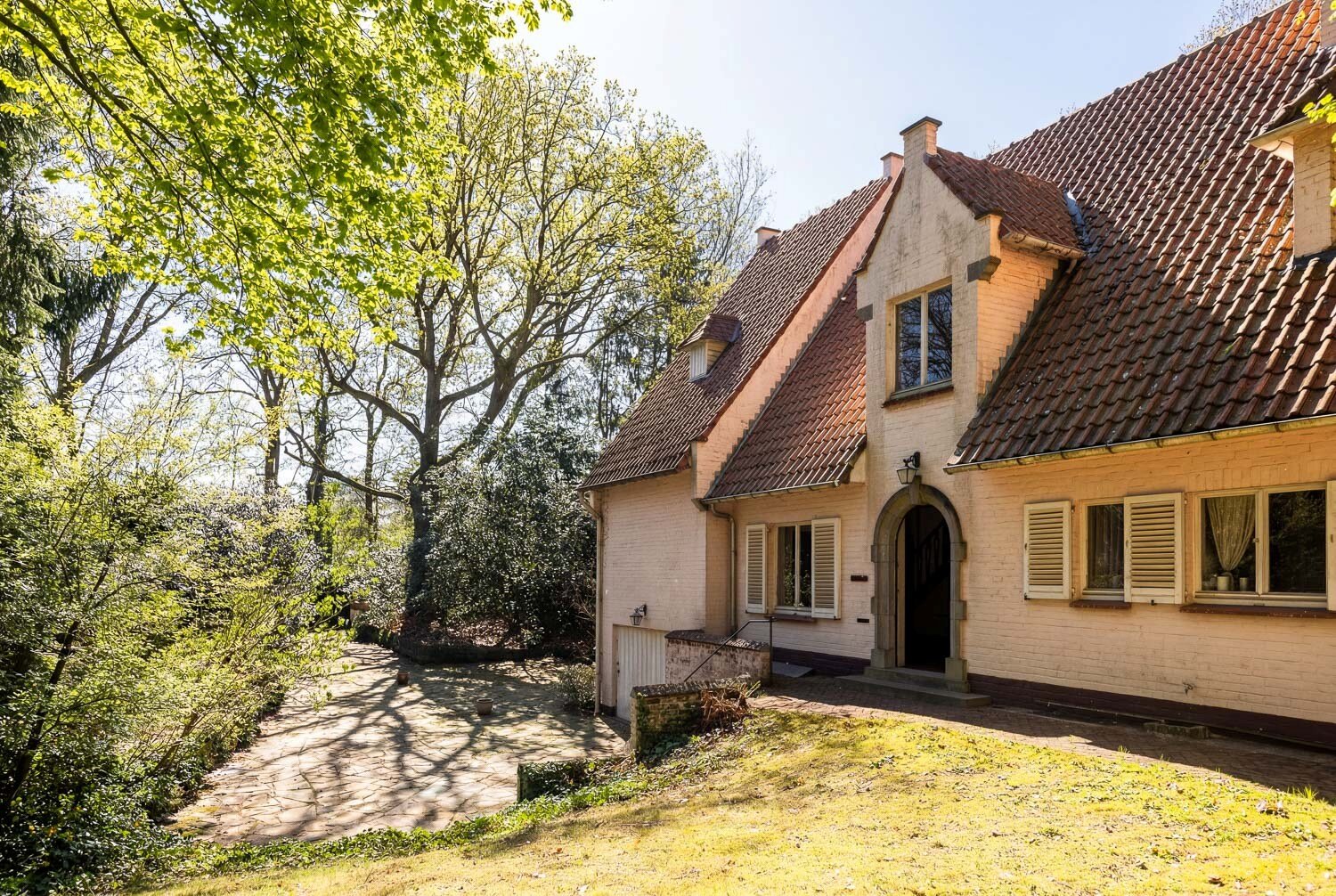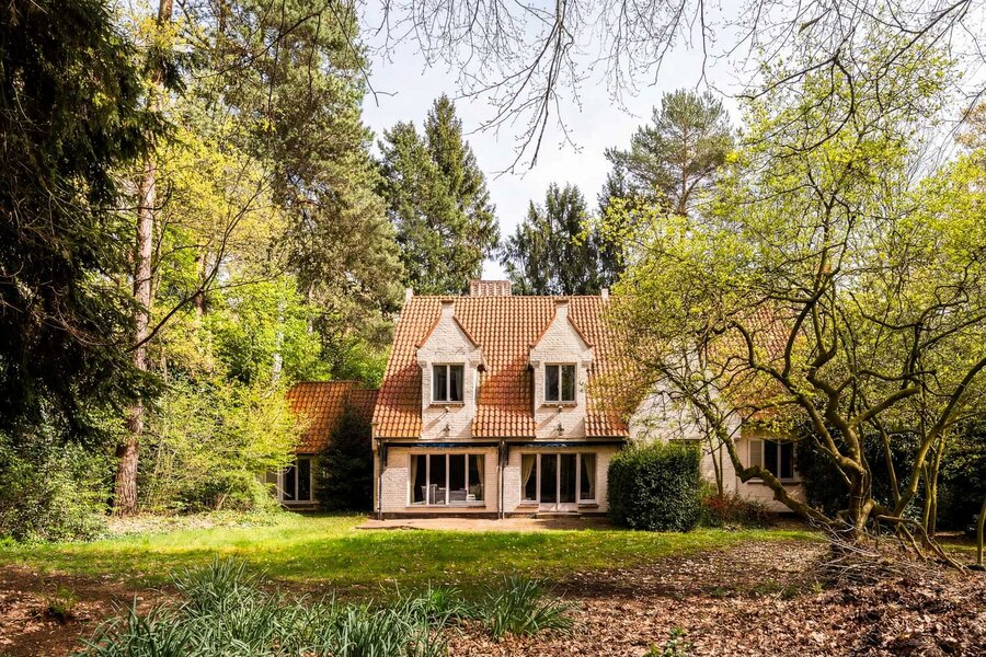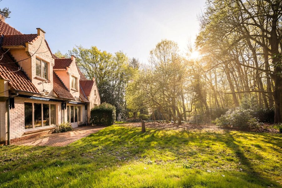 In het hart van Sint-Martens-Latem, verscholen in een uitzonderlijk groen en bosrijk kader, bevindt zich deze karaktervolle Latemse villa op een royaal perceel van 3.483 m².