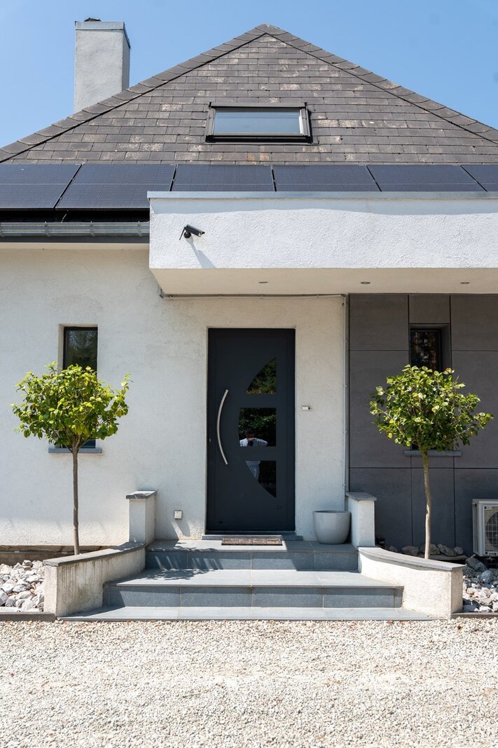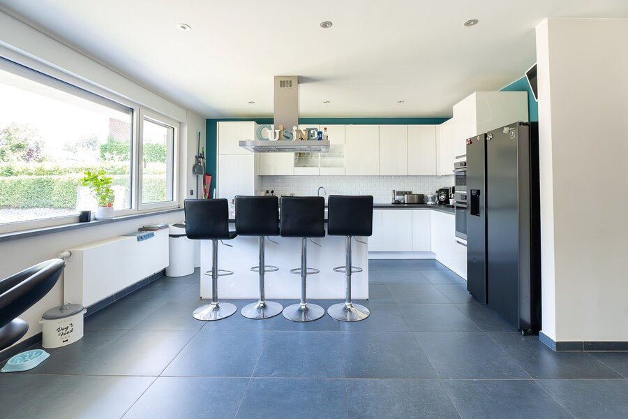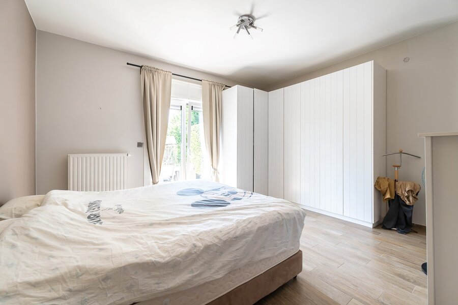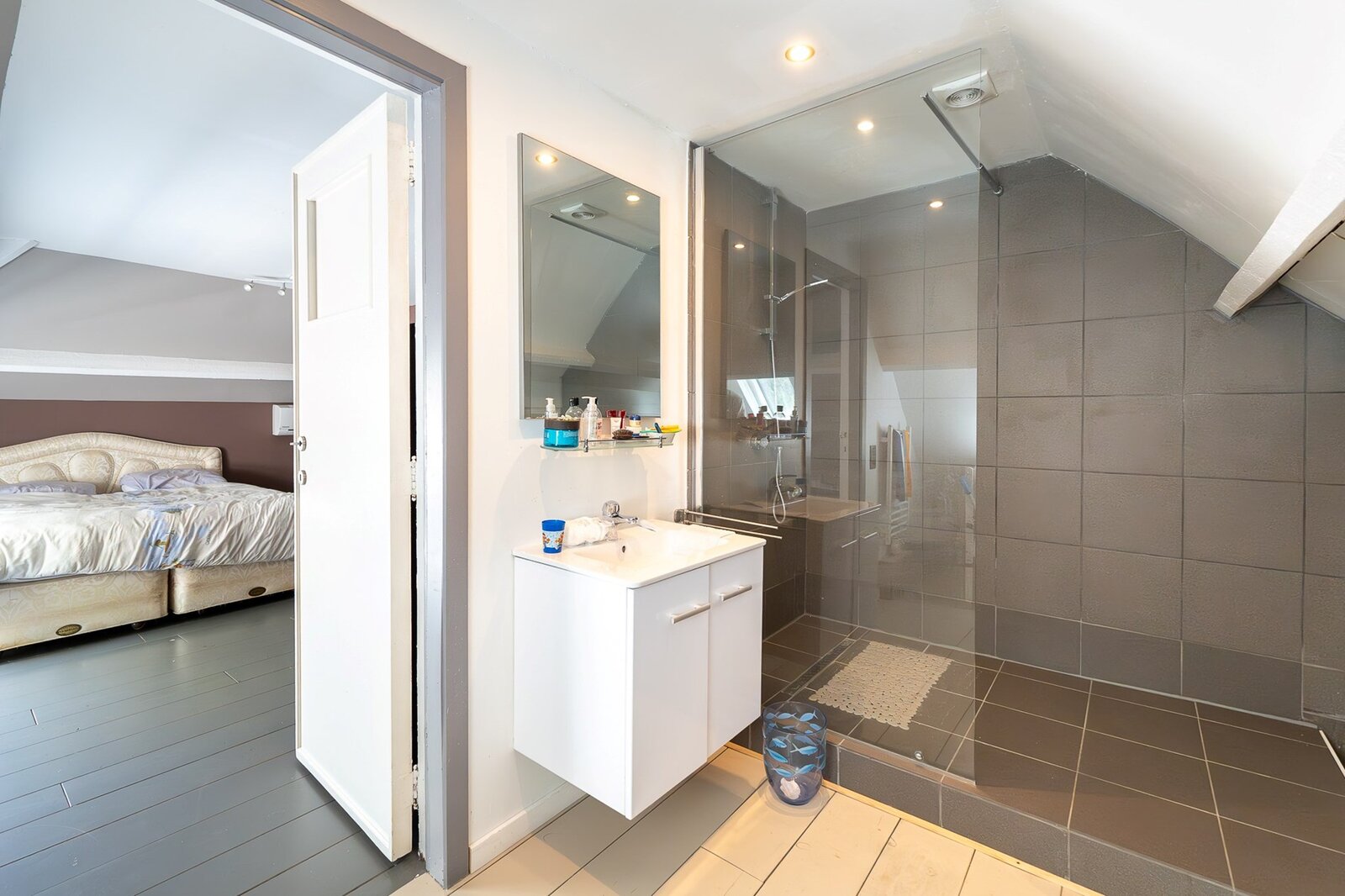 De bovenverdieping, meer klassiek, heeft drie extra slaapkamers en twee badkamers, met verschillende inrichtingsmogelijkheden. De tuin, intiem en verzorgd, vormt een oase van rust, met een jeu de boulesbaan. Het huis heeft 23 zonnepanelen en een stookolieketel.