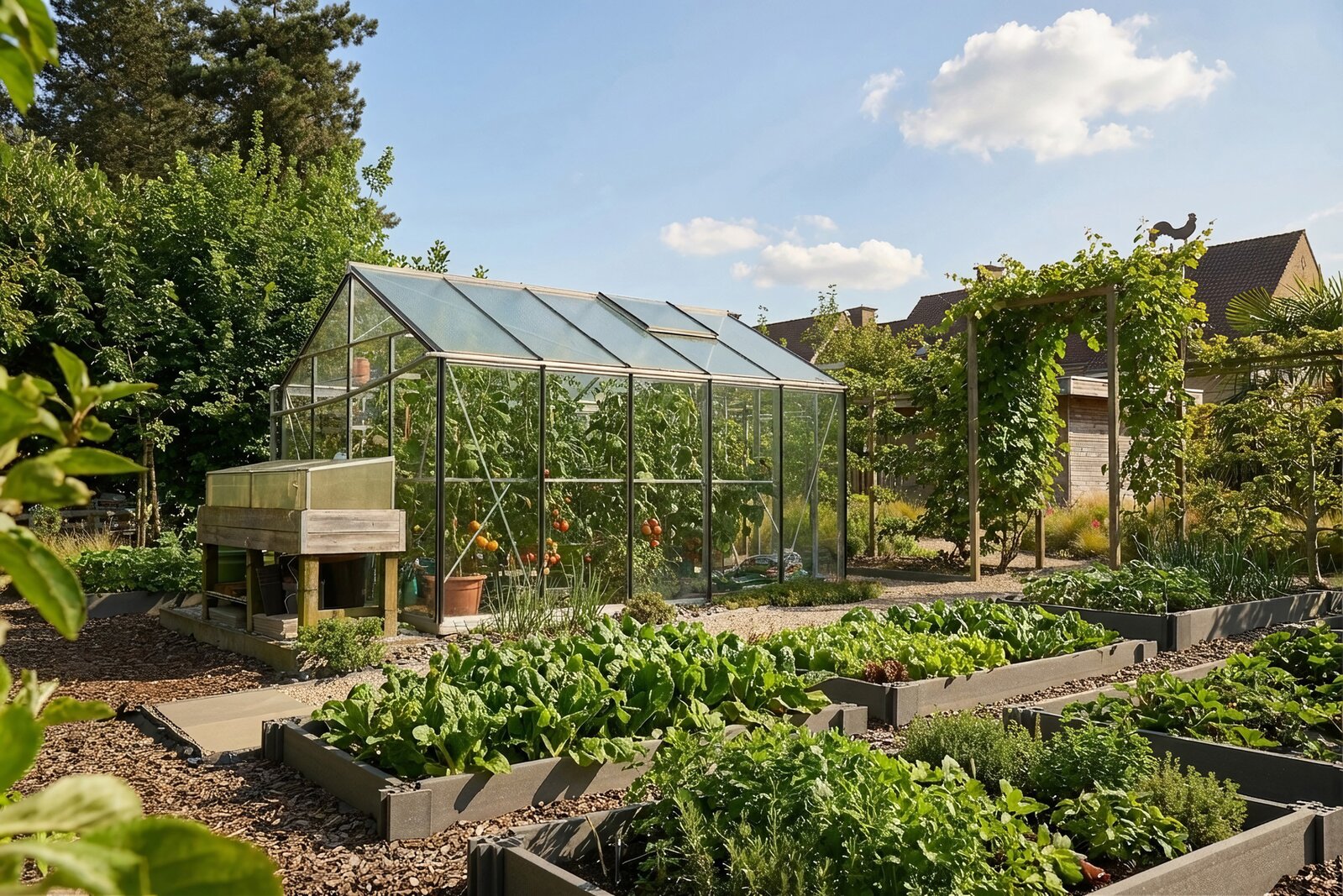 De tuin is volledig afgesloten en met zorg aangelegd, en biedt meerdere terrassen, een serre, een moestuin met fruitbomen en automatische beregening. Verder zijn er een carport, bijkomende parkeerplaatsen, een tuinhuis en sfeervolle verlichting voorzien.