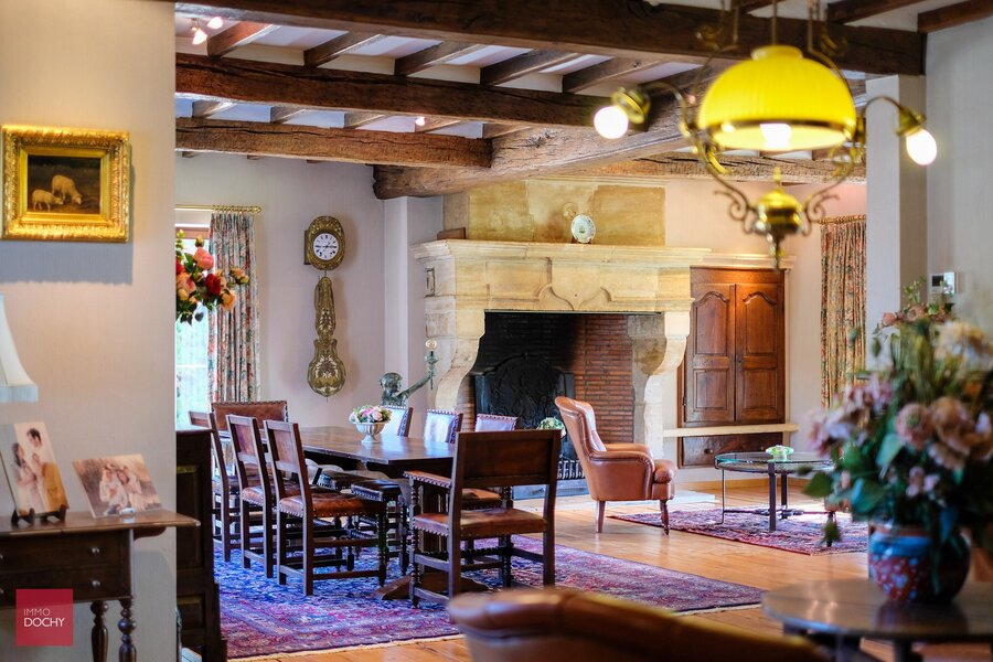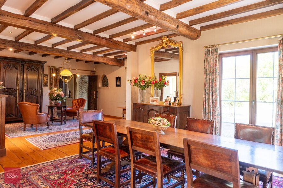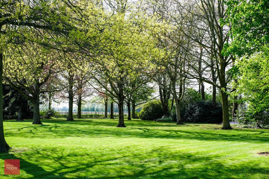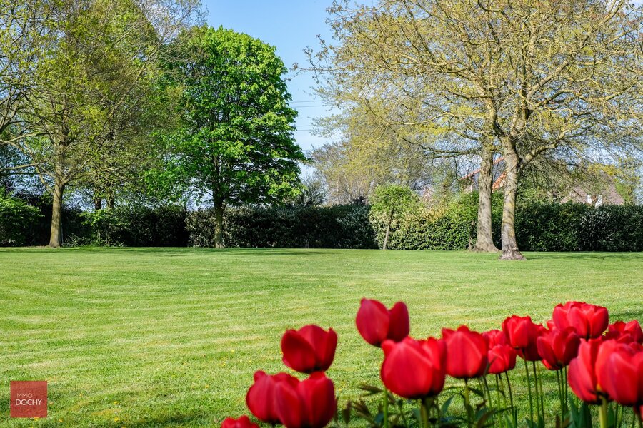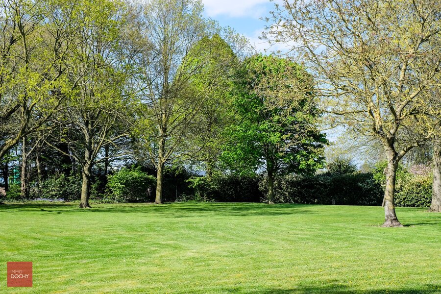 Afgeschermd van het straatbeeld bevindt zich deze eigendom op een groot perceel van bijna 1 hectare privacy. Villa bestaande uit een inkomhall, ruime living met open haard, keuken met eetruimte en zicht naar tuin, wasplaats, berging, 3 slaapkamers, badkamer, zolderruimte, kelder, garages en apart bijgebouw. Onderhoudsvriendelijke parktuin.