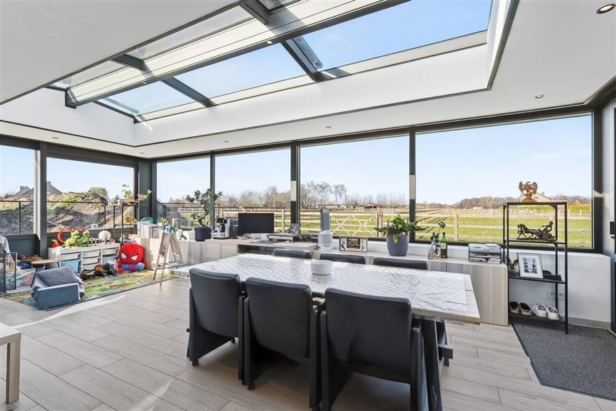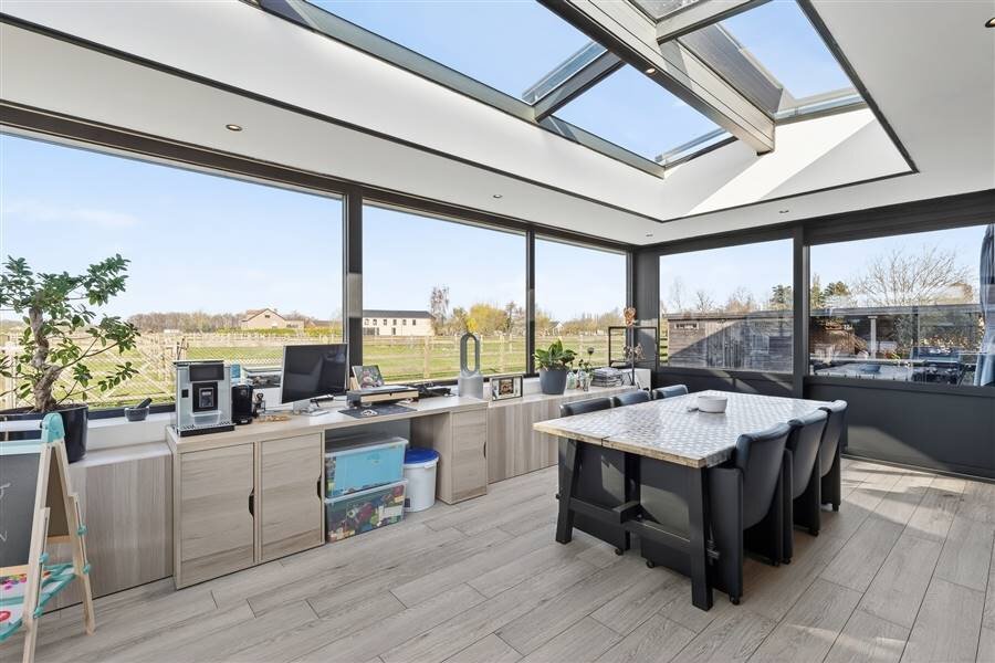 De woning werd gebouwd in 2019 en beschikt over een hedendaagse afwerking en een energiezuinig karakter met een EPC-score E33. Extra comfort wordt geboden door onder meer de aanwezigheid van voldoende parkeerruimte, airco en laadpalen. Dankzij de doordachte indeling en de lichtrijke veranda die in 2024 werd toegevoegd, geniet u hier van een aangename en comfortabele woonomgeving met een mooi zicht op het omliggende groen.