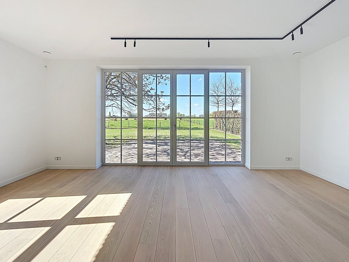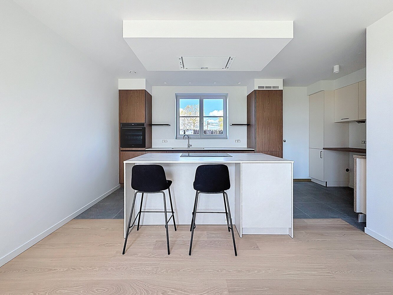 Bij het betreden van de woning wordt u verwelkomd in een ruime inkomhal met gastentoilet. Van daaruit komt u in de lichtrijke leefruimte, waar grote raampartijen het prachtige landschap als het ware naar binnen halen. De open keuken is volledig uitgerust met de nodige toestellen en vormt samen met de leefruimte een aangename plek om te koken met steeds zicht op het omliggende groen.