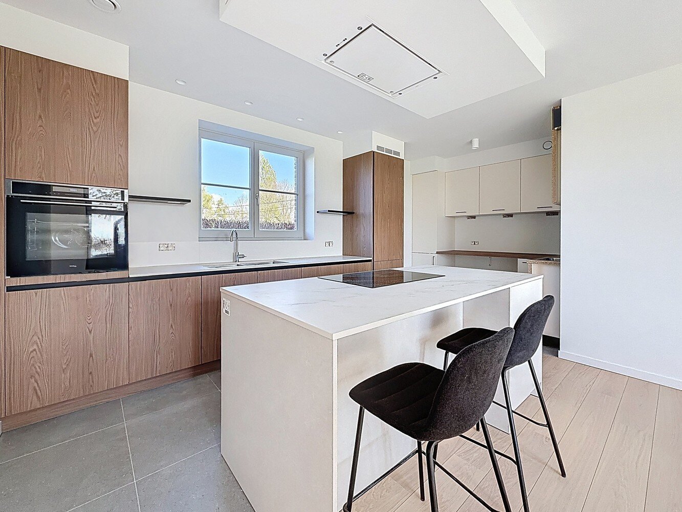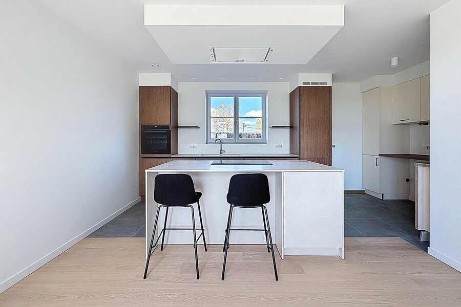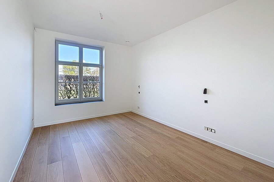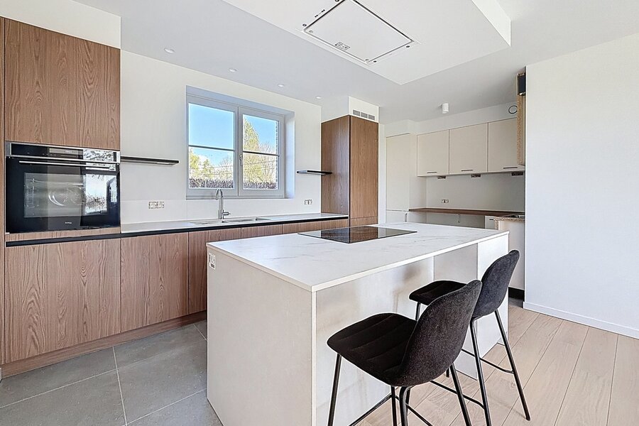 De woning werd met oog voor detail en met gebruik van hoogwaardige, duurzame materialen zoals een warmtepomp volledig afgewerkt, wat zich vertaalt in een tijdloze en elegante uitstraling. De combinatie van warme parketvloeren en kwalitatieve tegels zorgt voor een harmonieus geheel waarin comfort en stijl centraal staan.
