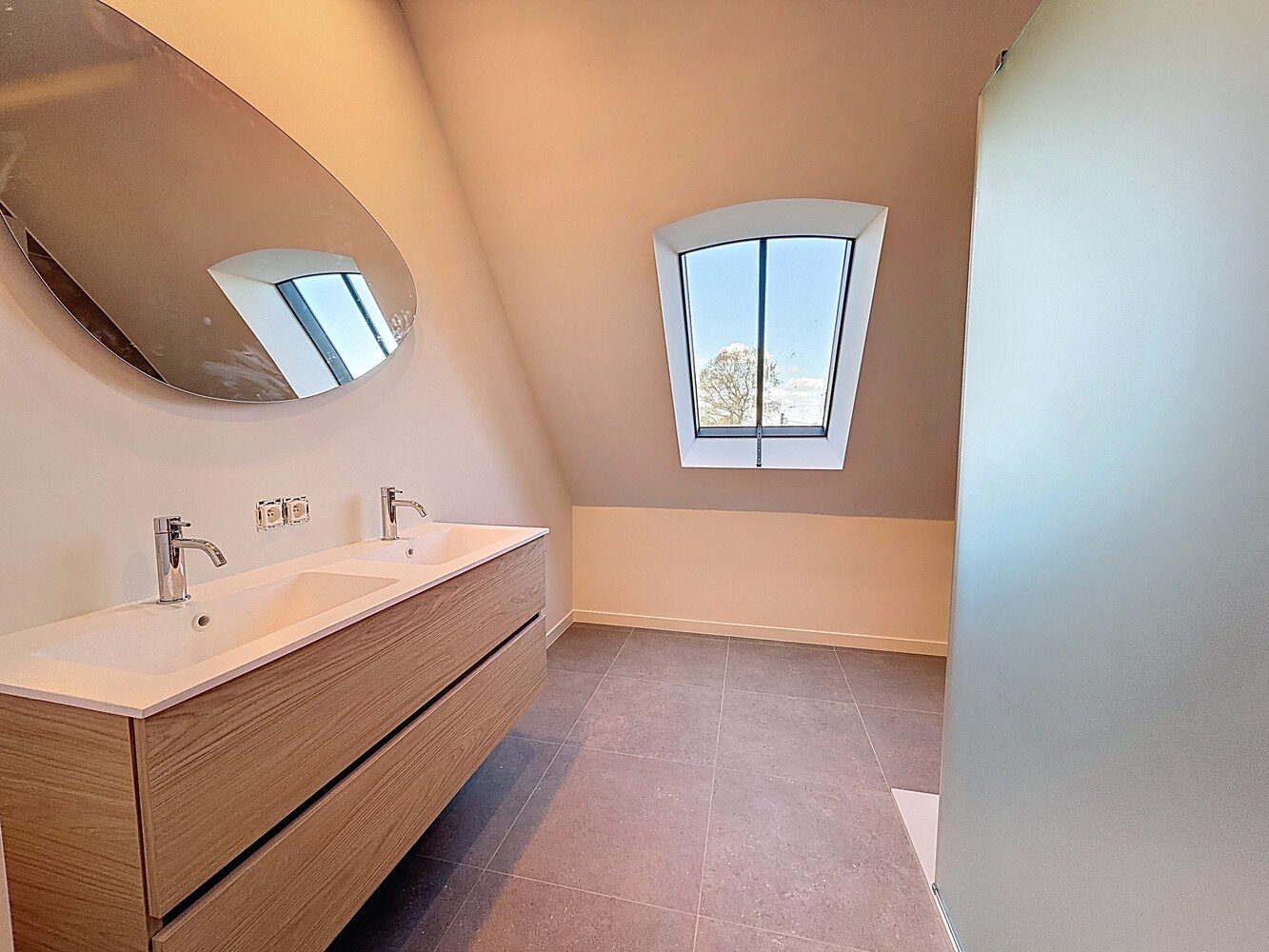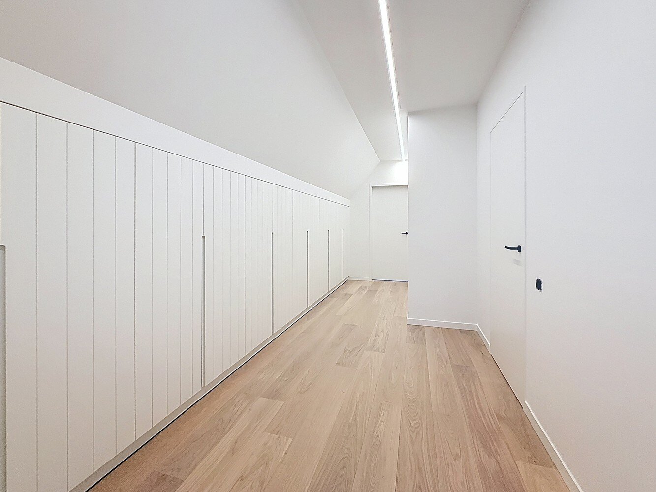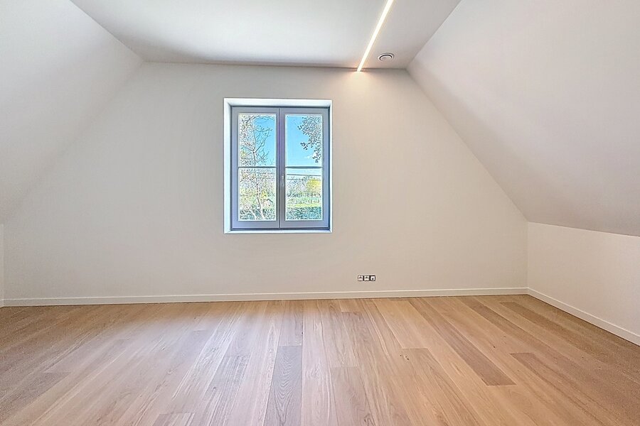 Op het gelijkvloers bevindt zich een volwaardige slaapkamer met aansluitende badkamer, ideaal voor wie gelijkvloers wenst te wonen of extra comfort zoekt. De eerste verdieping biedt plaats aan twee ruime slaapkamers, een tweede badkamer, een praktische technische-/bergruimte en een nachthal voorzien van ingebouwde kasten, wat zorgt voor extra opberggemak.