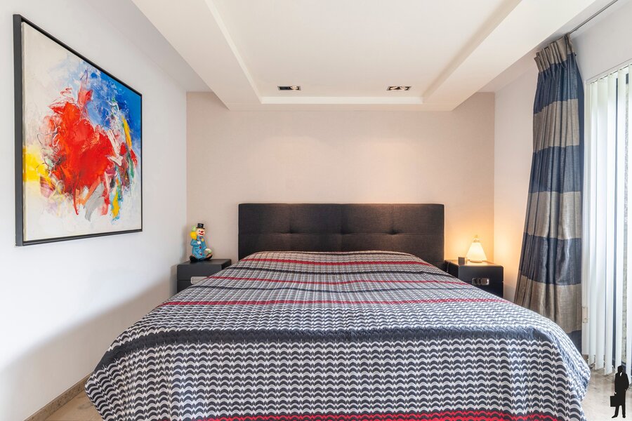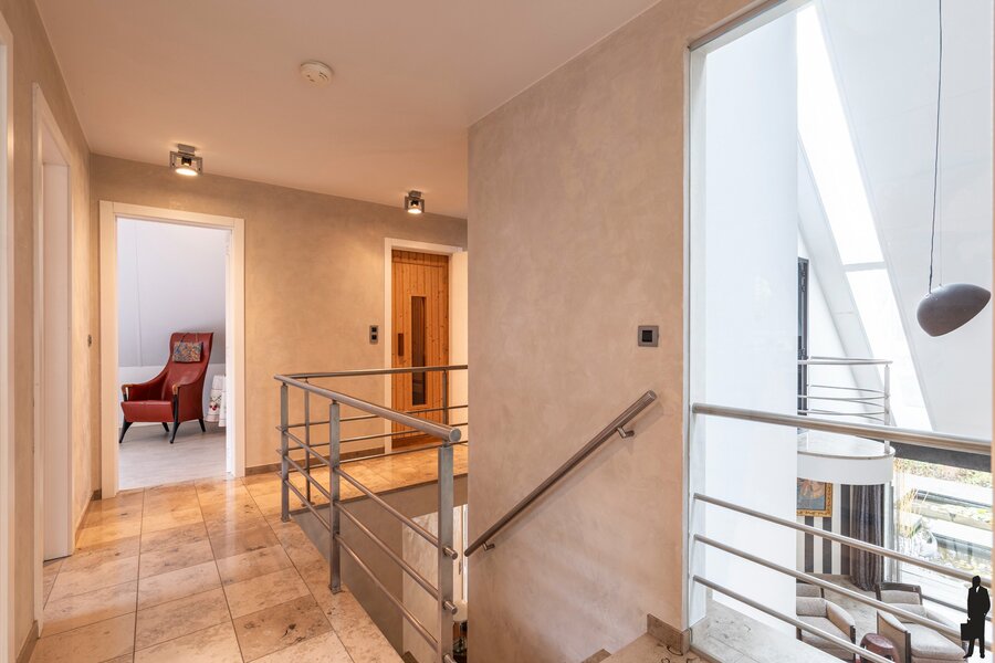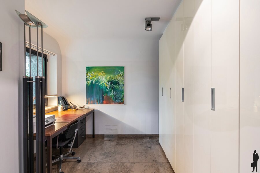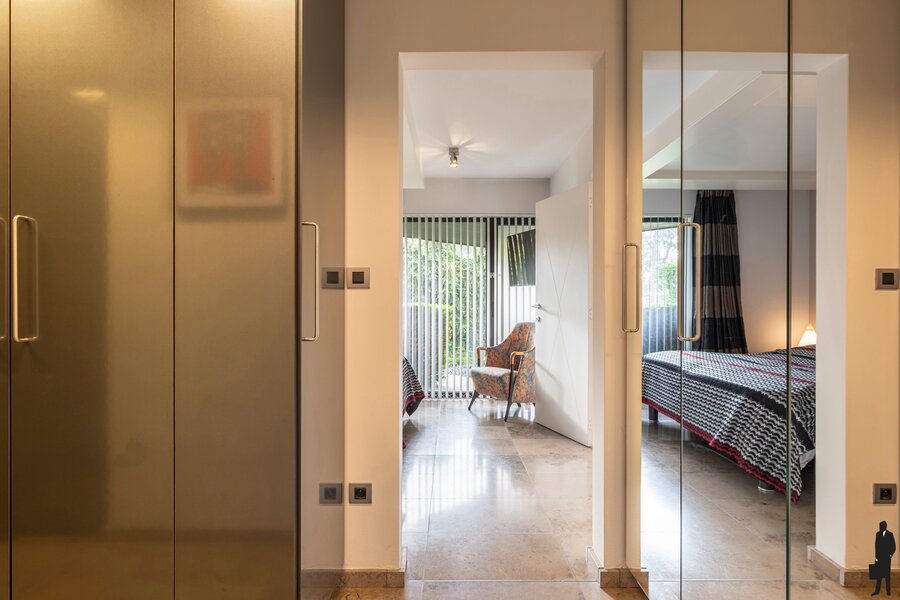 In het gelijkvloerse gedeelte is verder een benedenslaapkamer met nachtvertrekken waaronder een inloopdressing en een riante badkamer (ensuite). Deze badkamer is voorzien van douche en ligbad, voldoende kastruimte en een praktische dubbele lavabo in tegel en natuursteen.