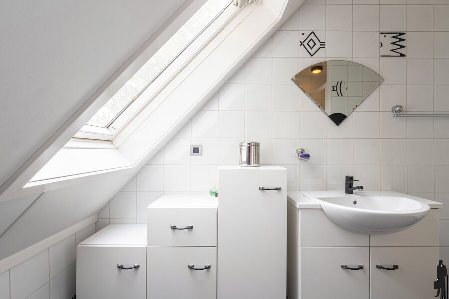 Deze zolderverdieping is thans oningericht, maar eenvoudig om te vormen tot 2 extra slaapkamers.