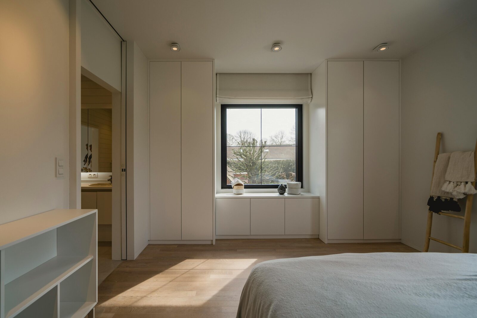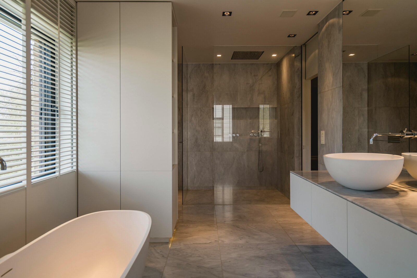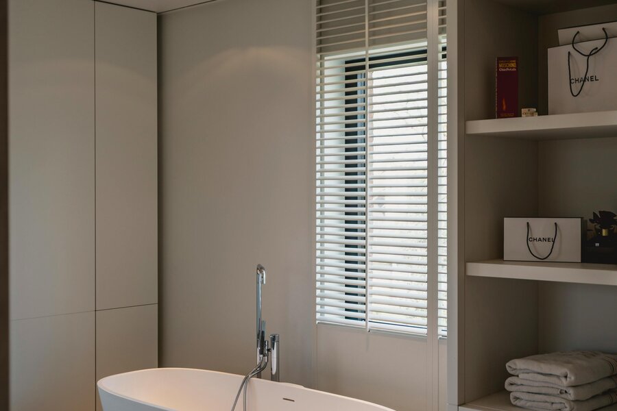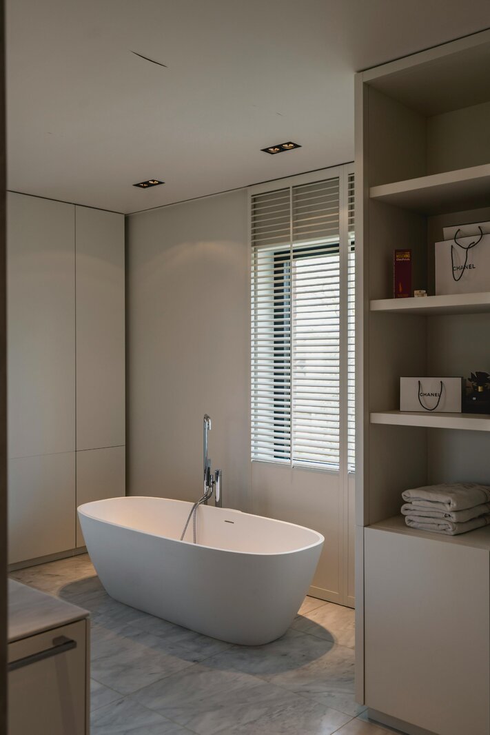 Op de verdieping bevinden zich vier ruime slaapkamers voorzien van maatwerk. De master suite beschikt over een recent vernieuwde, marmeren badkamer met een sculpturaal vrijstaand bad en inloopdouche. De overige kamers zijn voorzien van stijlvol maatwerk en twee praktische badkamers.