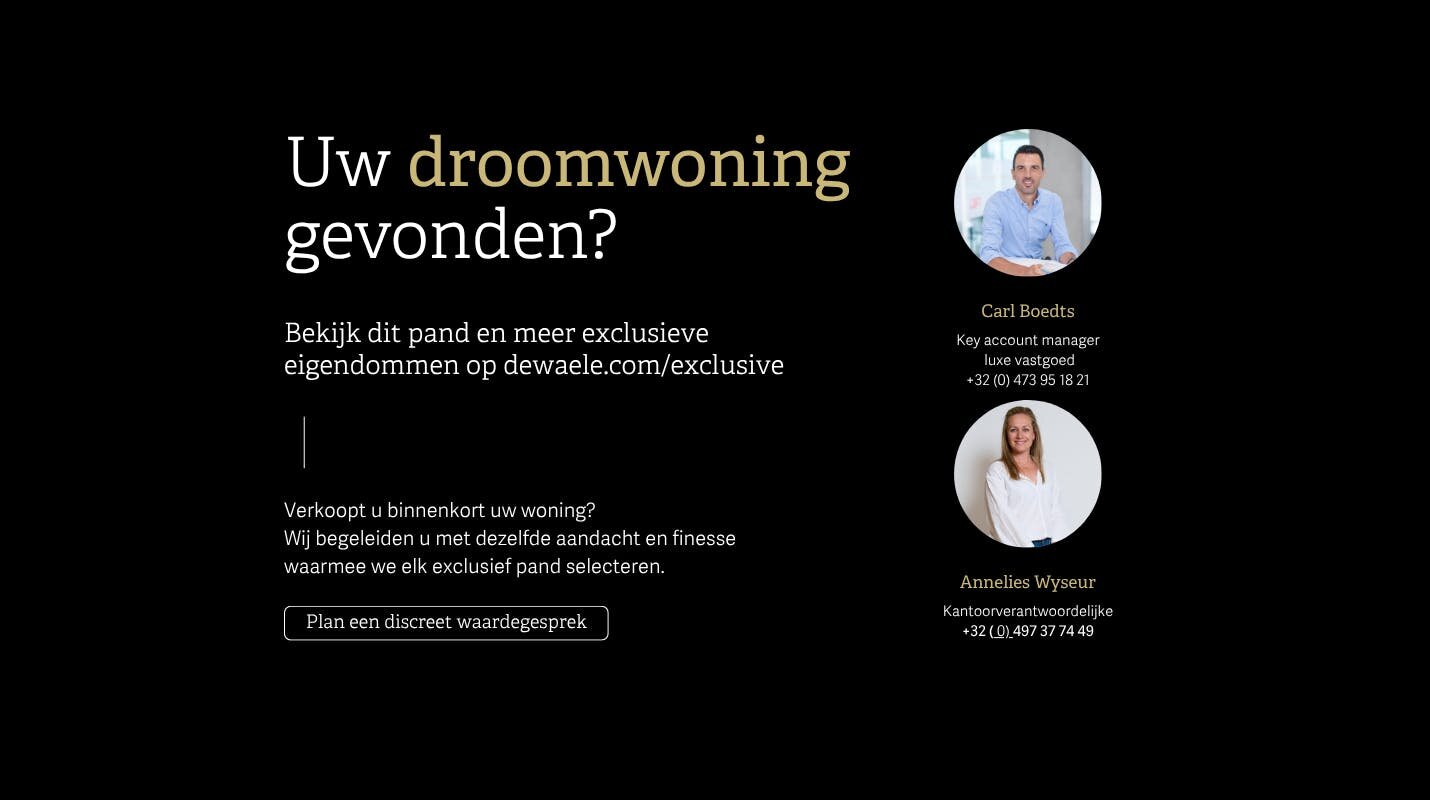 Neem contact op met Carl Boedts (0473/951821) of Annelies Wyseur (0497/377449) voor meer informatie over dit uitzonderlijke appartement.