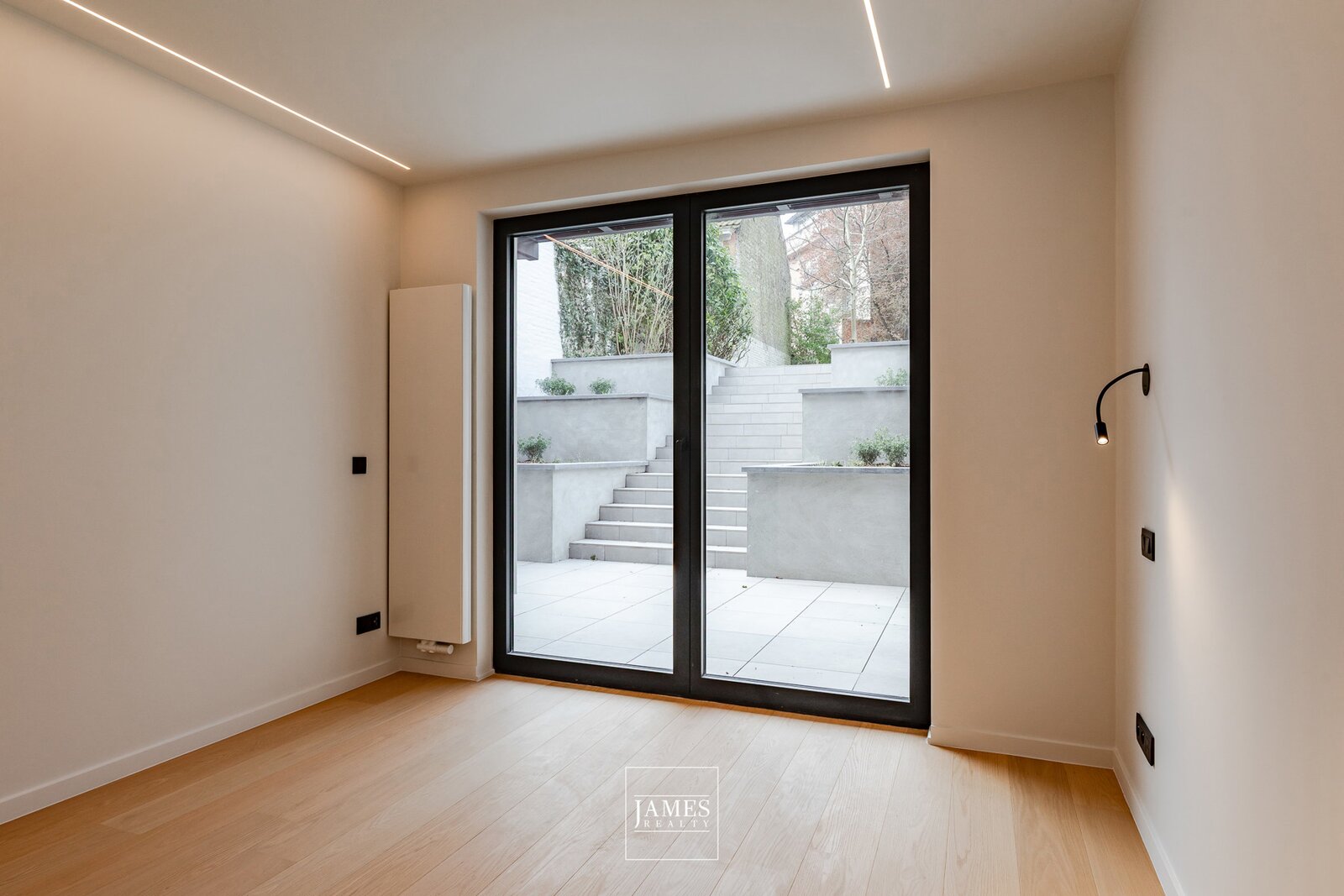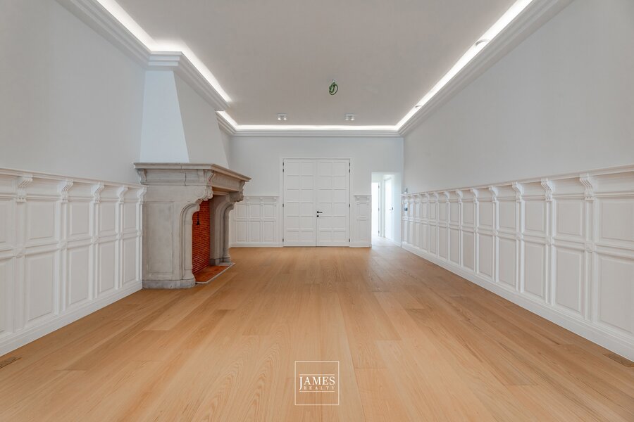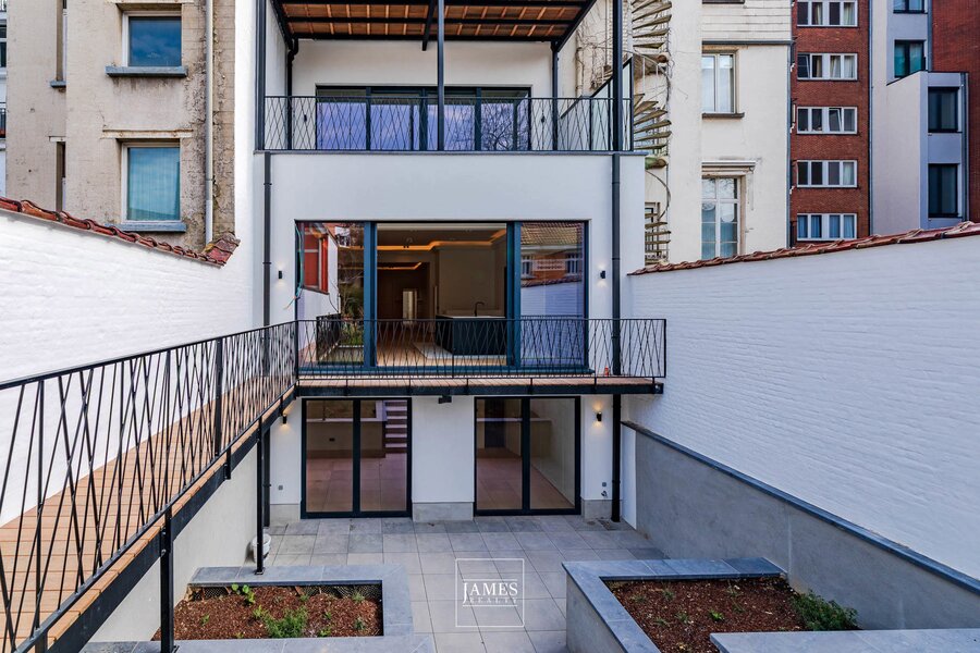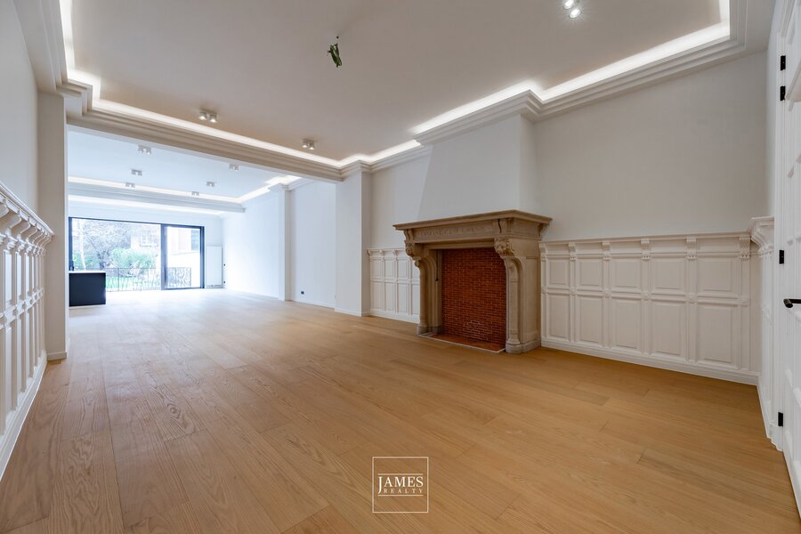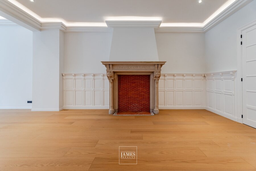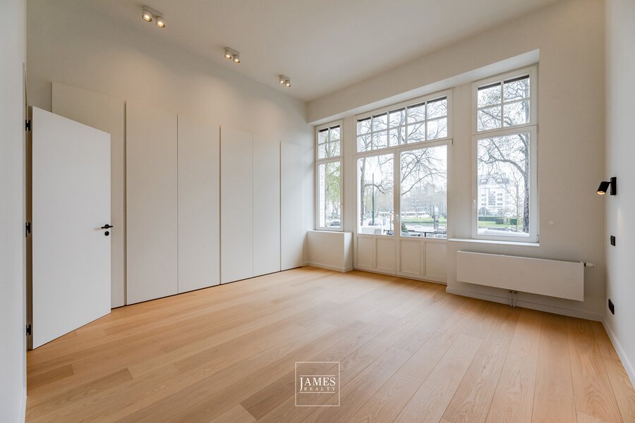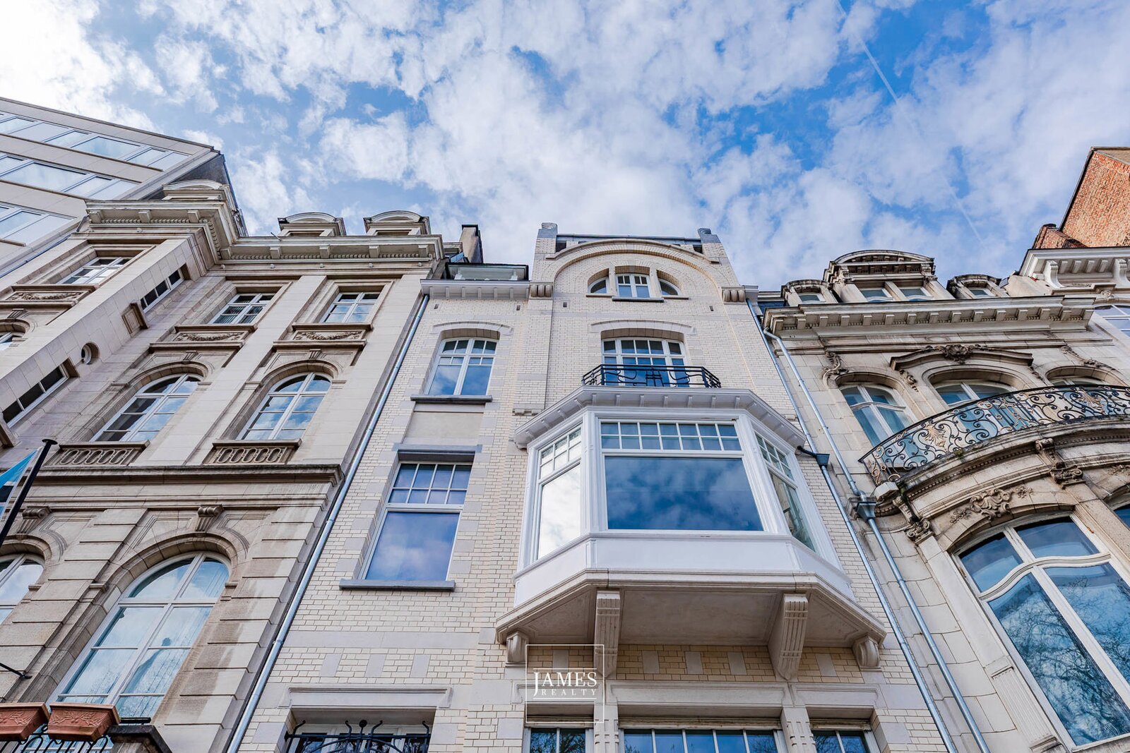 Gelegen op het gelijkvloers van dit elegant en volledig gerenoveerd gebouw aan het Square Montgomery, biedt dit duplex-appartement van ±230 m² een zeldzame woonomgeving die de charme van klassieke architectuur combineert met hedendaags comfort van hoog niveau.