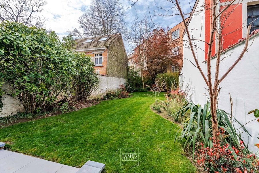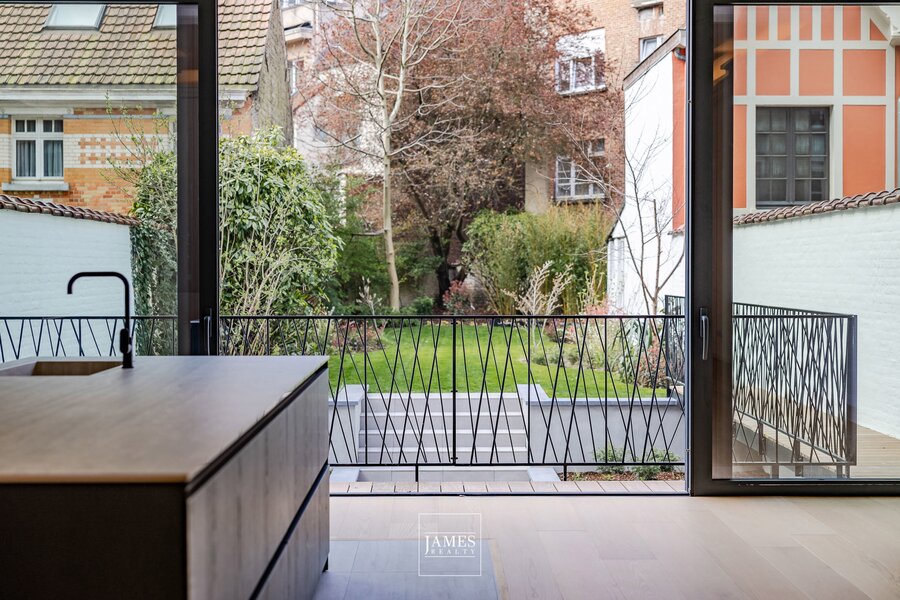 De leefruimtes, met hun royale volumes en hoge plafonds, creëren een warme en verfijnde sfeer. Ze geven rechtstreeks uit op een aangename, zuid/zuidwest georiënteerde tuin zonder inkijk, een echte verlenging van de woonruimtes in het hart van de stad.