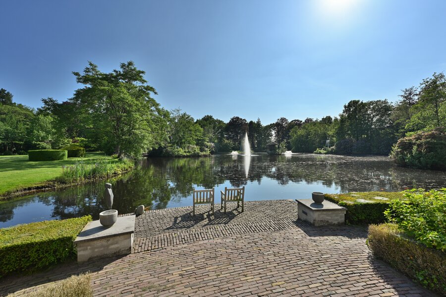 Statige inkomhal met prachtig trappenhuis en brede gang die toegang biedt naar de verschillende ruimtes op het gelijkvloers zoals een sfeervolle zithoek met open haard, een aparte eetkamer aan de voorkant, een schitterende tuinkamer voorzien van grote glaspartijen, allen met prachtig uitzicht op park en vijver en rechtstreekse toegang tot de overdekte terrassen. Bibliotheek/kantoorruimte, riante leefkeuken met gashaard, intieme TV-hoek met gashaard, bijkeuken, wasplaats, vestiaireruimte met ruim gastentoilet.