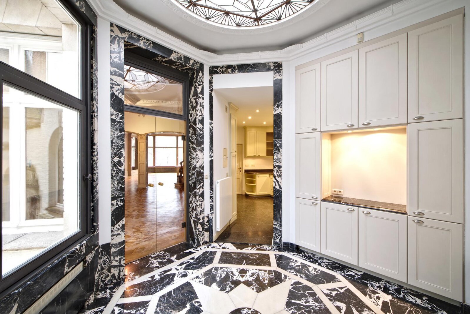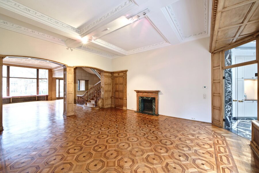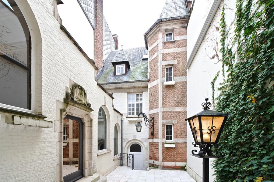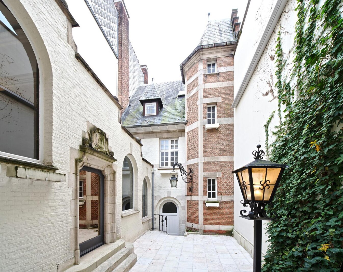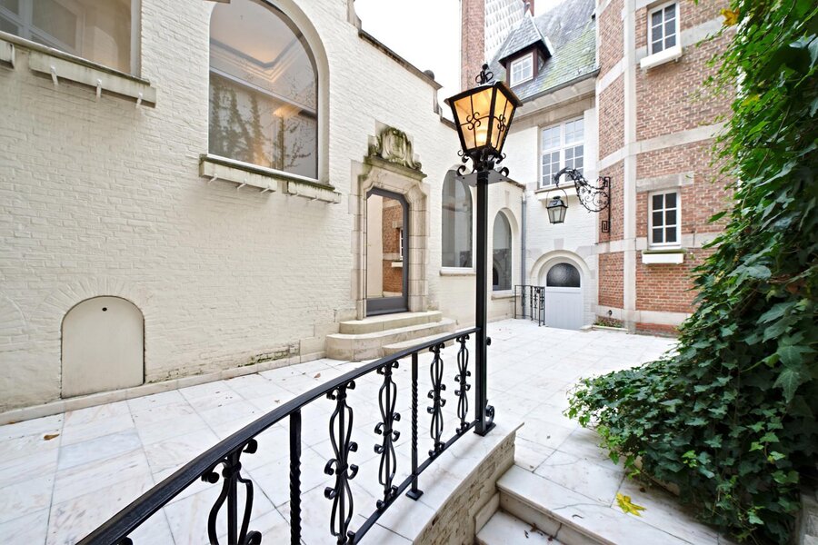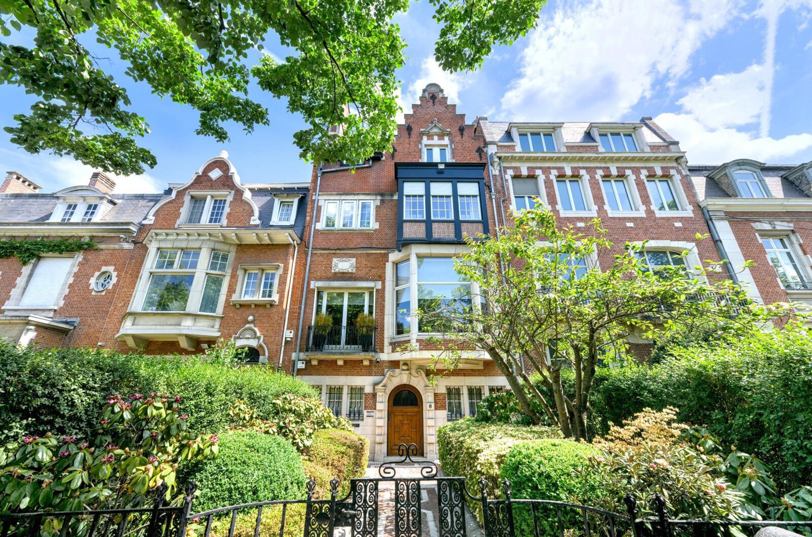 Prachtig prestigieus herenhuis van +/- 650 m², volledig gerenoveerd, parket, lijstwerk, hoge plafonds en groot terras / binnenplaats. Zeer grote recepties, nieuwe keuken met ontbijtruimte in galerij, 4 grote slaapkamers, 3 badkamers, 1 doucheruimte. Studio op de begane grond, conciërge aan de achterkant (2/3 slaapkamers, keuken, badkamer, doucheruimte). Garage 2 auto's + 2 parkeerplaatsen. EPB D certificaten.