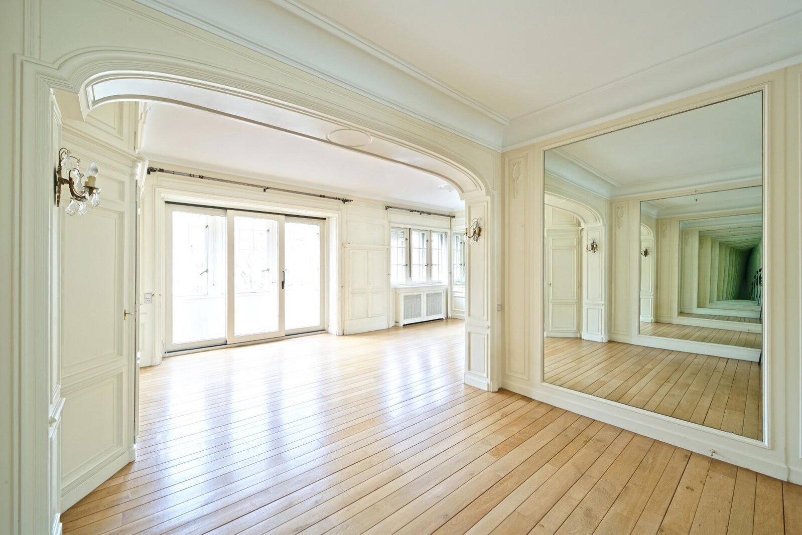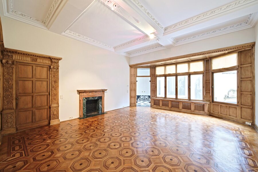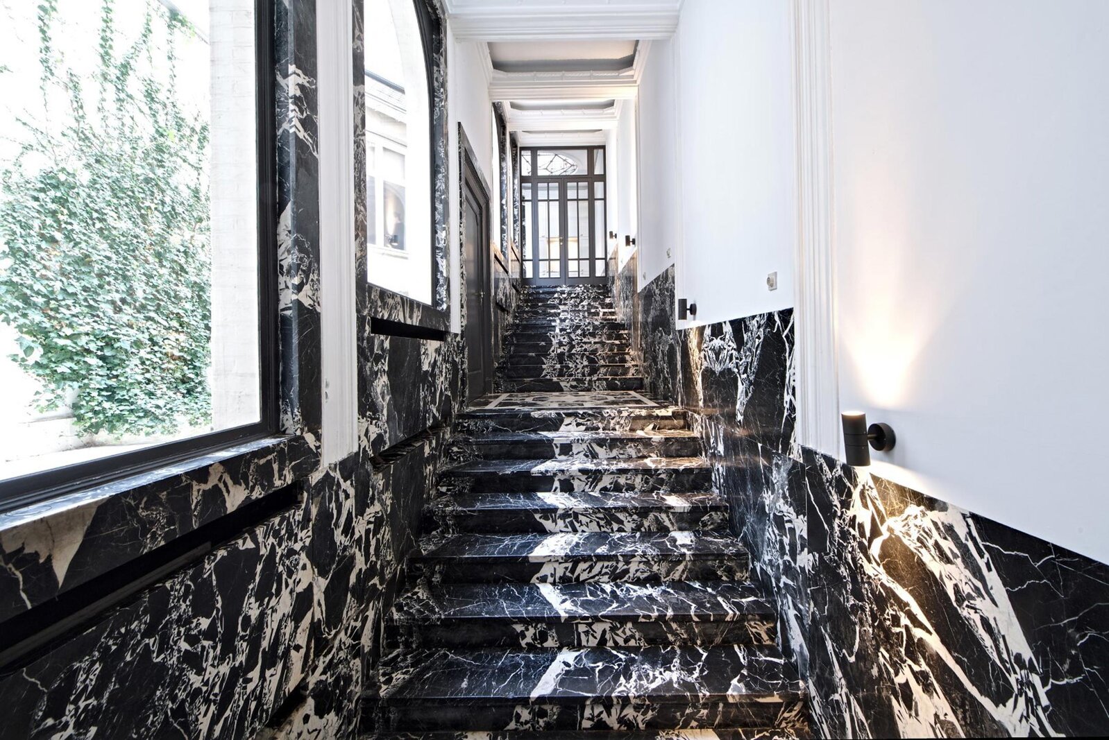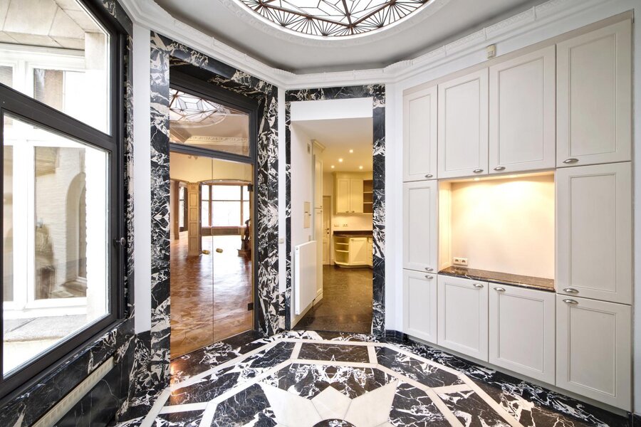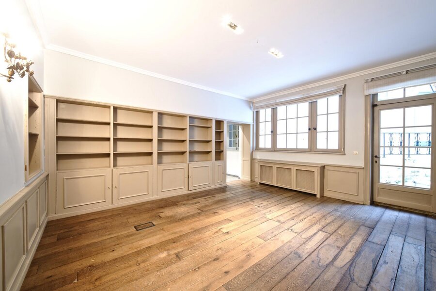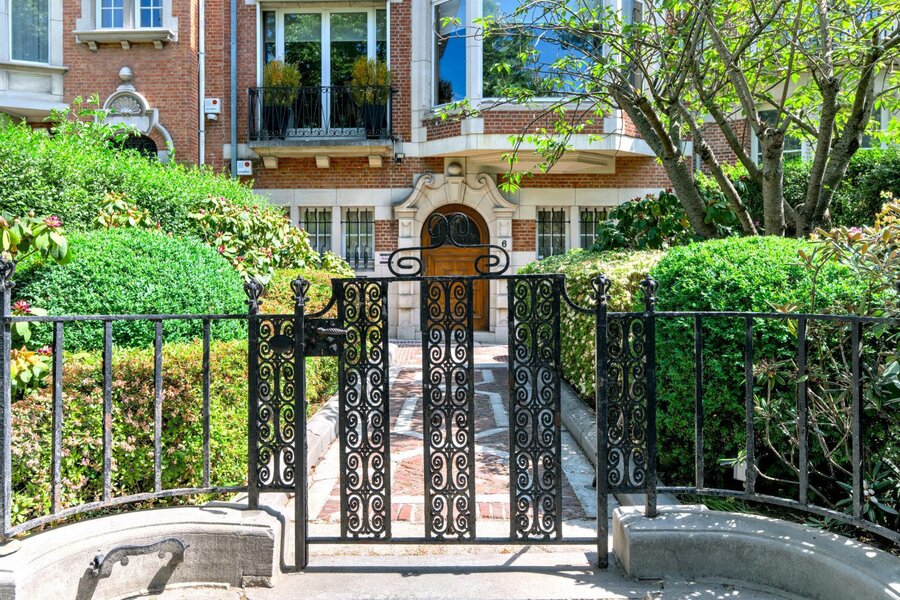Prachtig prestigieus herenhuis van +/- 650 m², volledig gerenoveerd, parket, lijstwerk, hoge plafonds en groot terras / binnenplaats. Zeer grote recepties, nieuwe keuken met ontbijtruimte in galerij, 4 grote slaapkamers, 3 badkamers, 1 doucheruimte. Studio op de begane grond, conciërge aan de achterkant (2/3 slaapkamers, keuken, badkamer, doucheruimte). Garage 2 auto's + 2 parkeerplaatsen. EPB D certificaten.