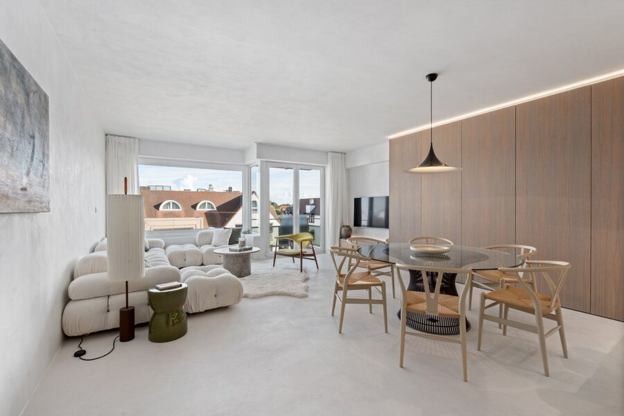 Luxueus gerenoveerd appartement op een topligging vlakbij de winkels en het strand met uitzicht op de Kustlaan en de Minigolf. Mogelijkheid tot aankoop van het aanwezige meubilair.