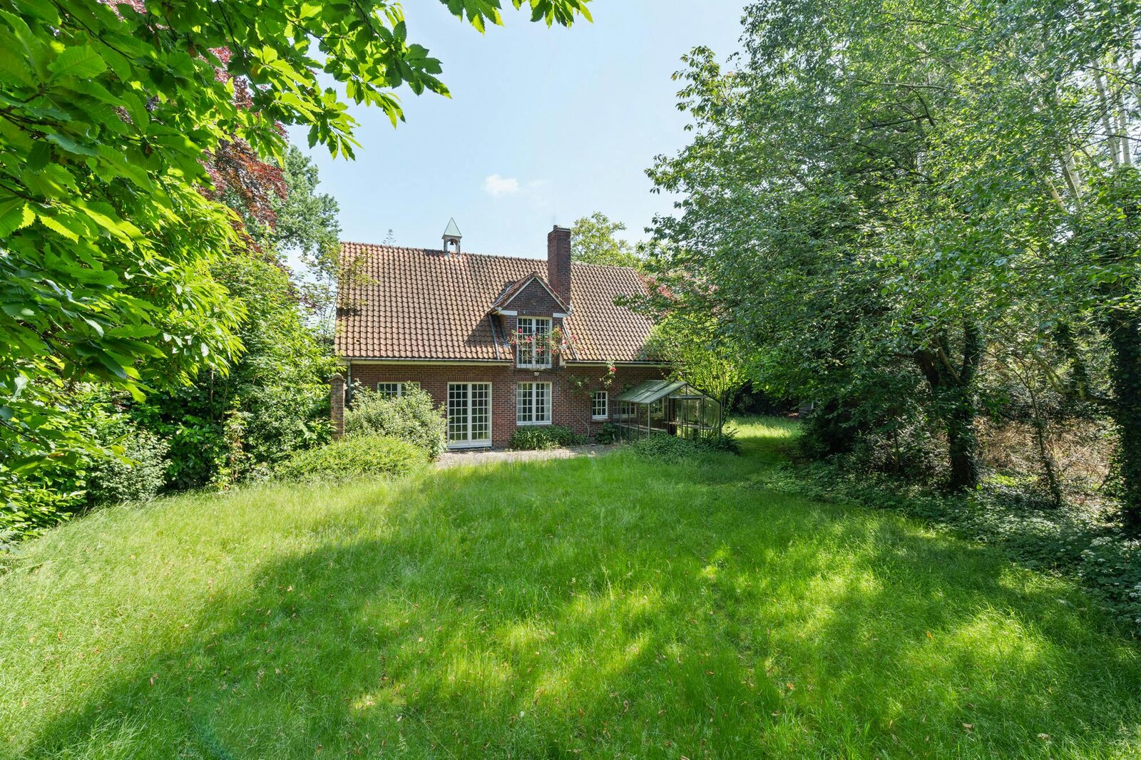 De vrijstaande woning bevindt zich aan Kleinkouterken, een residentiële straat nabij het centrum van Sint-Denijs-Westrem die tevens een vlotte verbinding geniet naar Gent, Afsnee en Sint-Martens-Latem. De villa wordt niet enkel onttrokken aan het zicht door een hoge haag, maar ligt ook aan het einde van een lange oprijlaan. Hierdoor geniet u van een uitzonderlijke hoeveelheid privacy, rust en stilte.