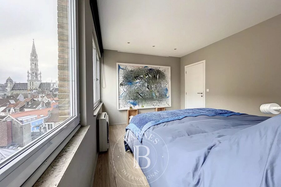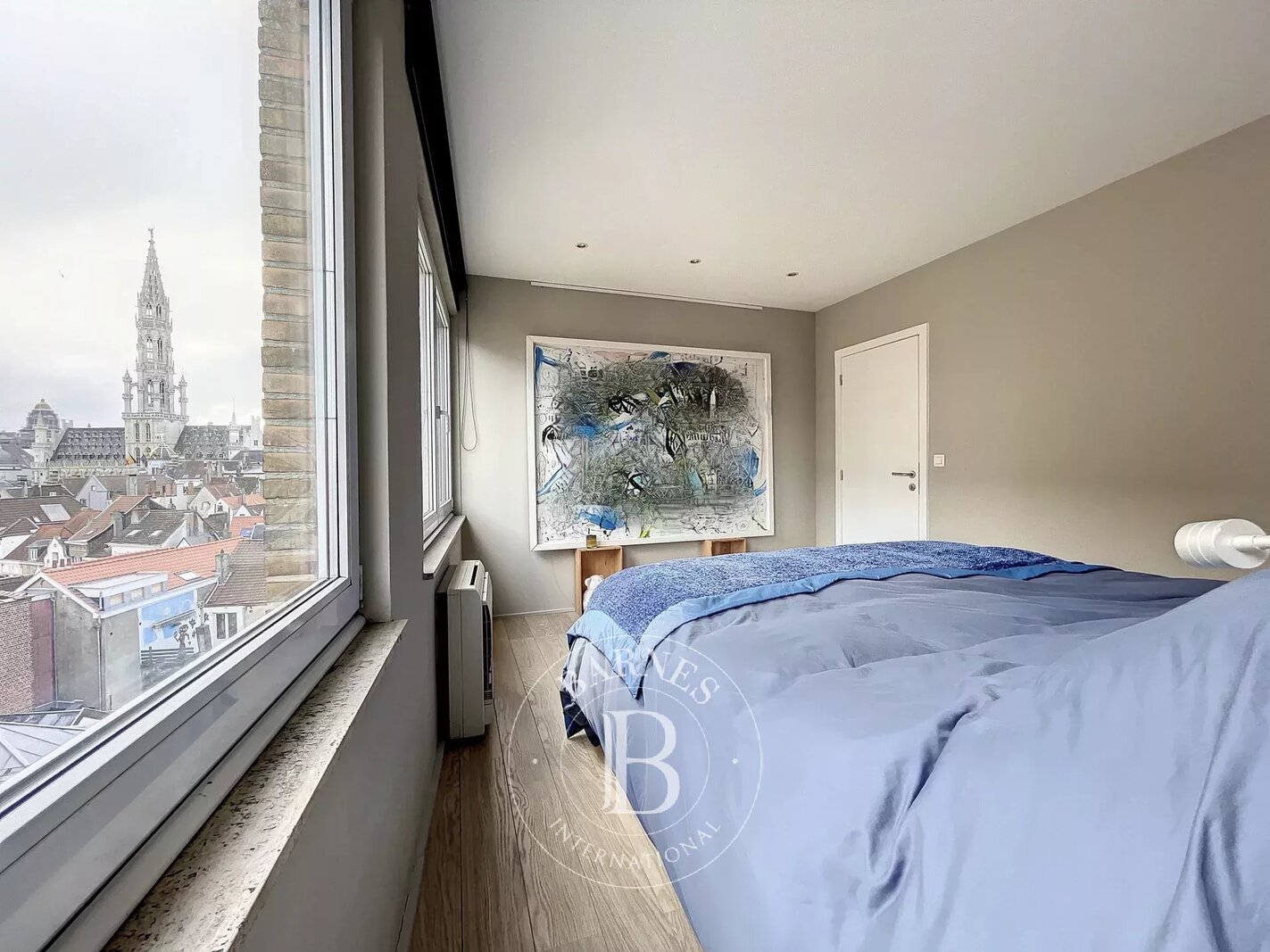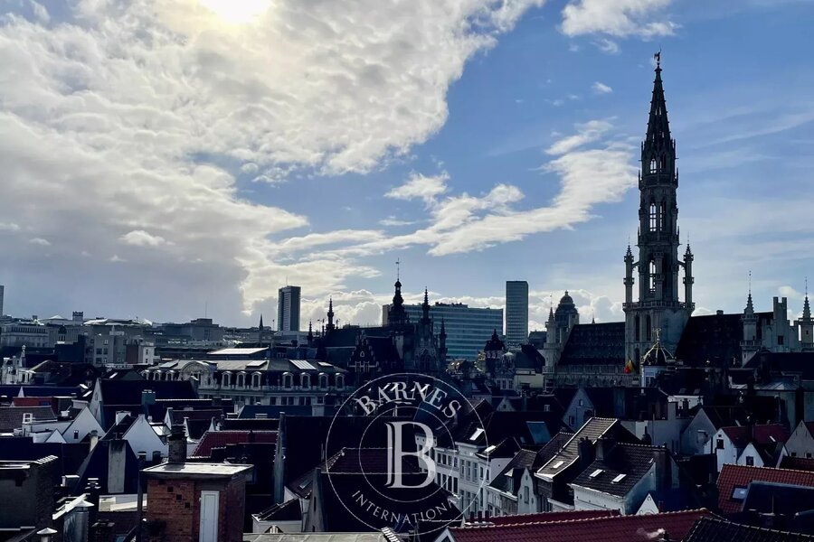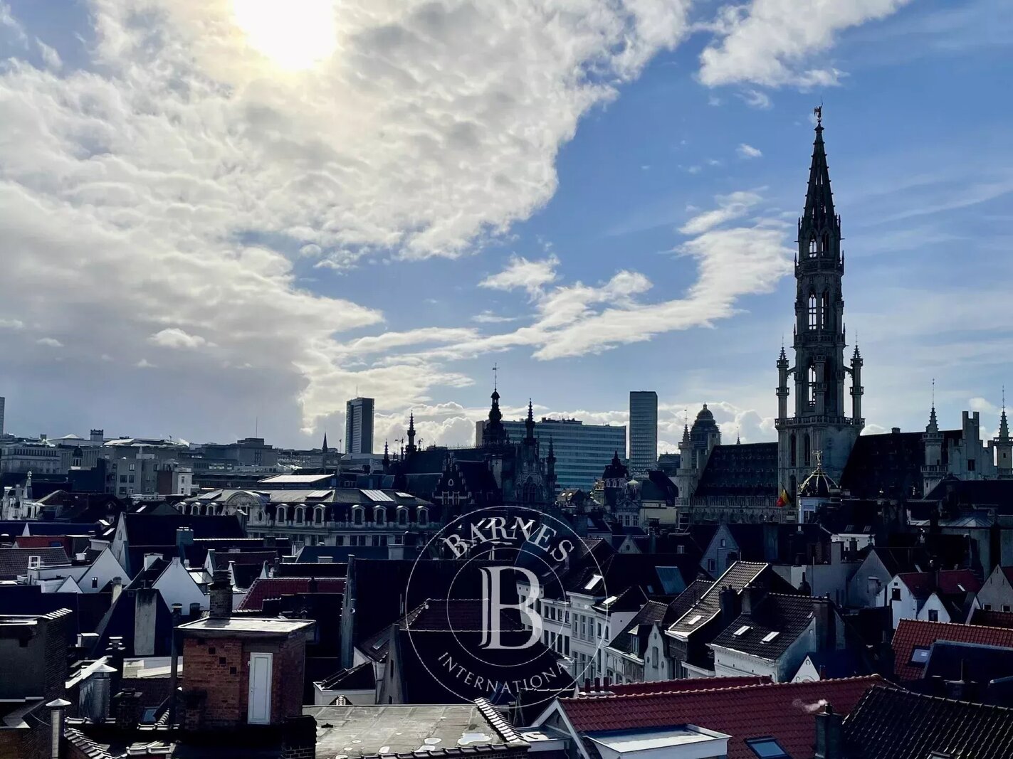 Bij BARNES. In het historische centrum tussen de Grote Markt en de munt, uitzicht over de daken van de stad, vindt u dit lumineuze Penthouse van +-215m2 - 195m2 volgens EPC. Het appartement is als volgt samengesteld: Inkomhal die uitkomt op de grote woonkamer van 62m2 en het prachtige zonnige terras van 30 m2 - 2 slaapkamers - kleedkamer - kantoor of 3de slaapkamer - badkamer - douchekamer - wc - sportruimte - wasruimte - berging - Berging op onderste niveau.