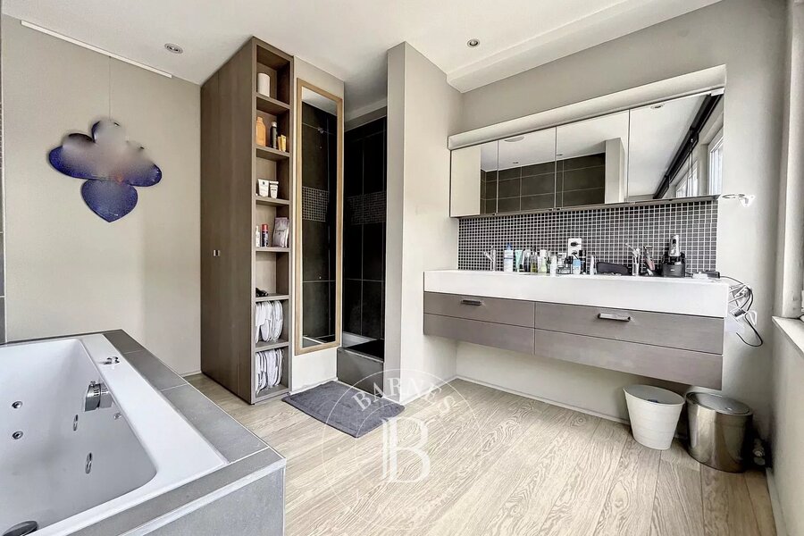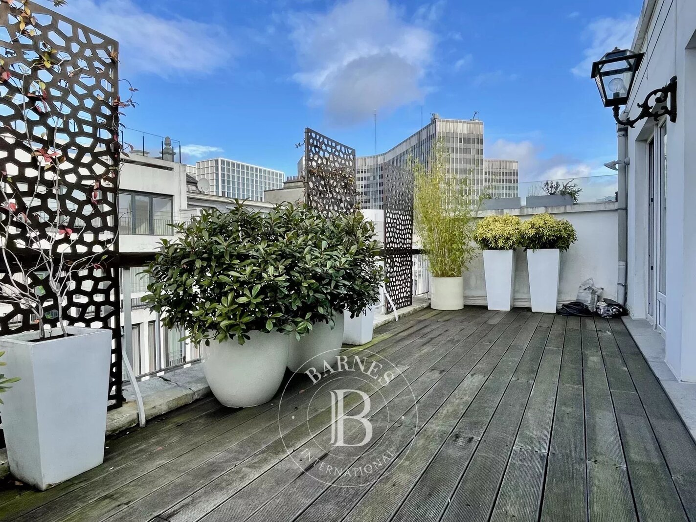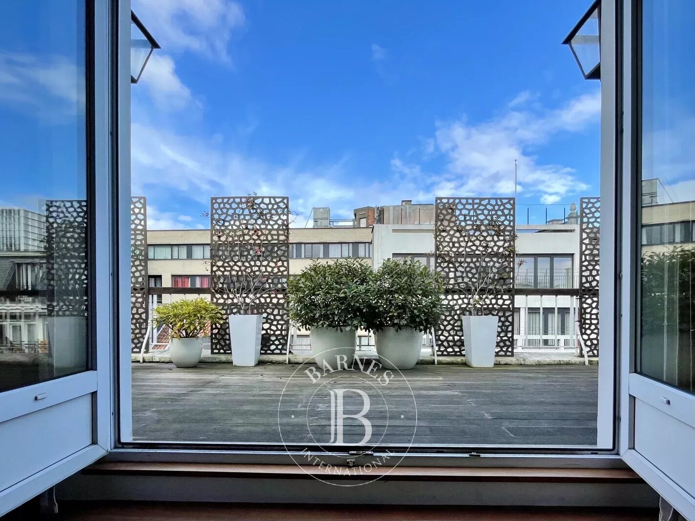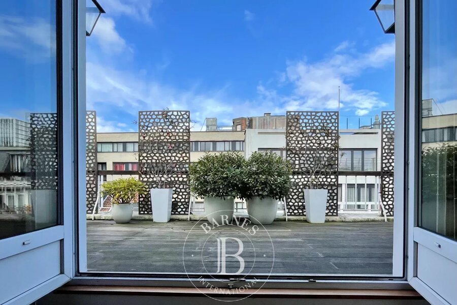 Bij BARNES. In het historische centrum tussen de Grote Markt en de munt, uitzicht over de daken van de stad, vindt u dit lumineuze Penthouse van +-215m2 - 195m2 volgens EPC. Het appartement is als volgt samengesteld: Inkomhal die uitkomt op de grote woonkamer van 62m2 en het prachtige zonnige terras van 30 m2 - 2 slaapkamers - kleedkamer - kantoor of 3de slaapkamer - badkamer - douchekamer - wc - sportruimte - wasruimte - berging - Berging op onderste niveau.