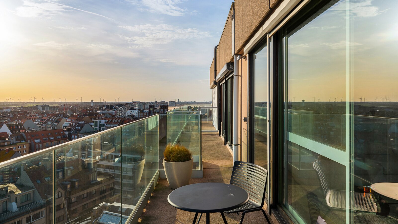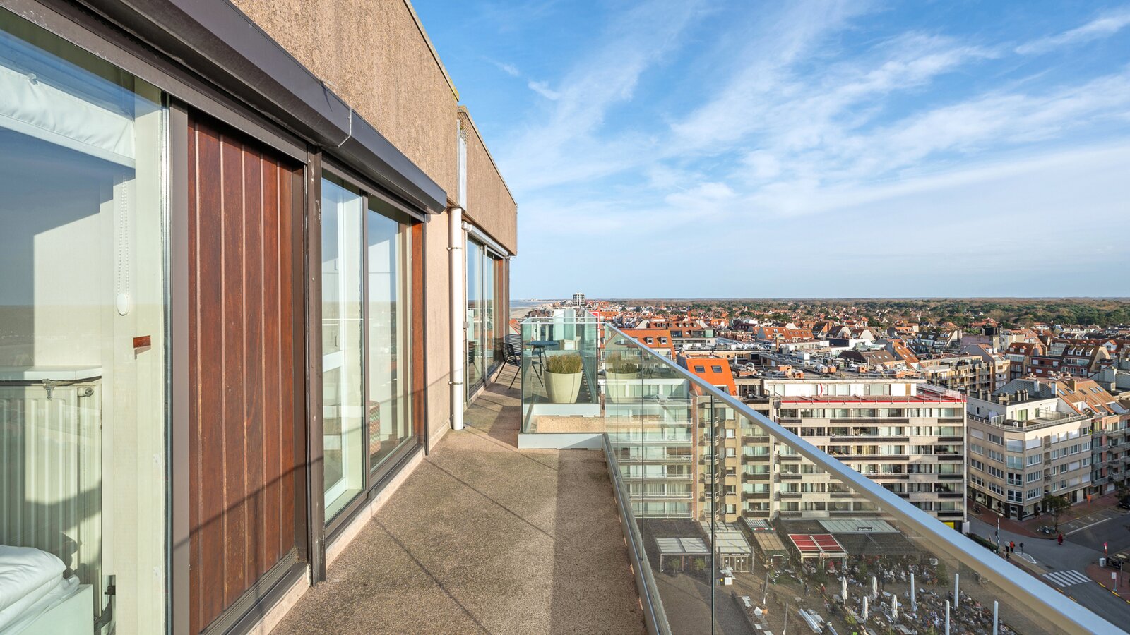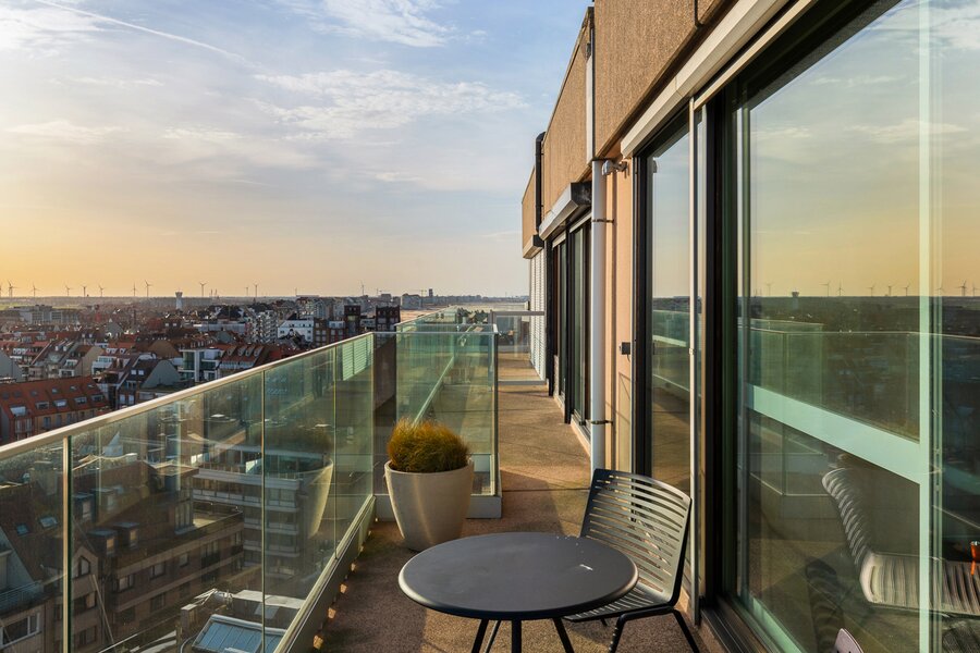 Uitzonderlijke penthouse gelegen op de Zeedijk aan het Van Bunnenplein met panoramische zichten op land en zee en mooi zonneterras achteraan.